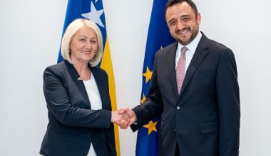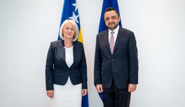 Predsjedateljica Vijeća ministara Bosne i Hercegovine Borjana Krišto primila je u nastupni posjet veleposlanika Republike Turske u BiH Nj. E. Emina Aksekija. Tijekom sastanka predsjedateljica Krišto istaknula je prijateljske odnose i dobru bilateralnu suradnju Bosne i Hercegovine i Republike Turske.