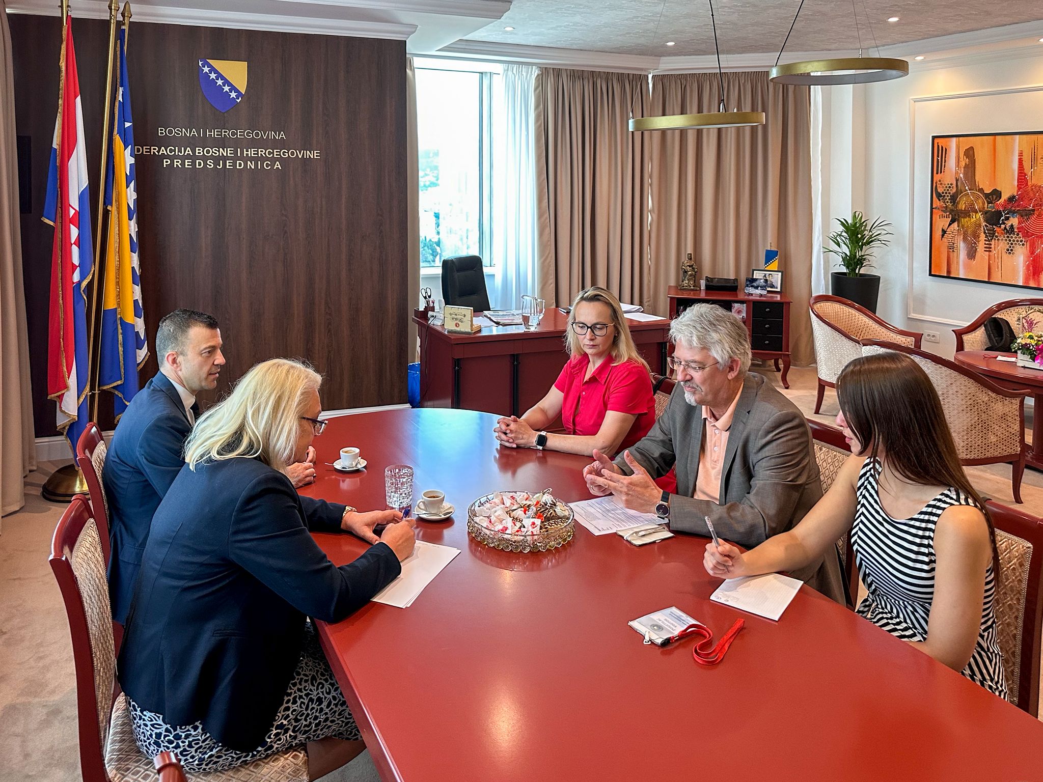 U uredu predsjednice Federacije Bosne i Hercegovine Lidije Bradara održan je radni sastanak između vodstva Političke akademije HDZ-a BiH i predstavnika Fondacije Konrad Adenauer (KAS) u Bosni i Hercegovini. U razgovoru su sudjelovali ravnateljica Akademije Lidija Bradara, direktor Predstavništva KAS-a Stephan Raabe te izvršni direktor Akademije Damir Džeba.