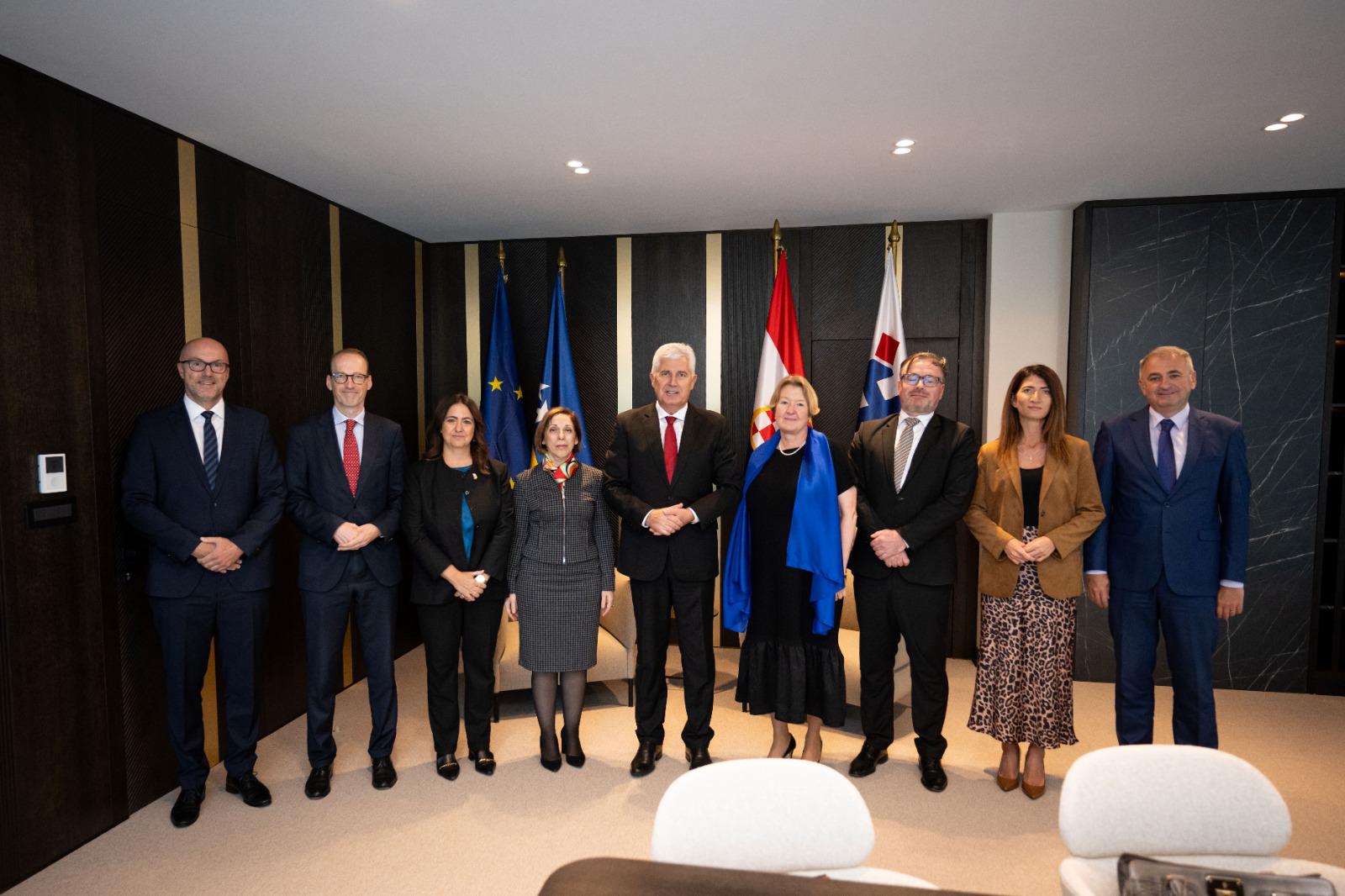 U središtu sastanka bio je aktualni politički trenutak u Bosni i Hercegovini, pri čemu je osobita pažnja posvećena napretku zemlje na europskom putu te ključnim reformama nužnima za jačanje stabilnosti i funkcionalnosti institucija. Predsjednik Čović naglasio je važnost daljnjeg provođenja reformskih iskoraka te jačanja suradnje s međunarodnim partnerima radi ubrzanja reformskih procesa, koji su od presudnog značaja za europsku perspektivu BiH. Ovom je prilikom ponovno istaknuo iznimnu važnost podrške Skupine prijatelja Zapadnog Balkana koju je istaknuo ključnom u trenutnom političkom i gospodarskom kontekstu.