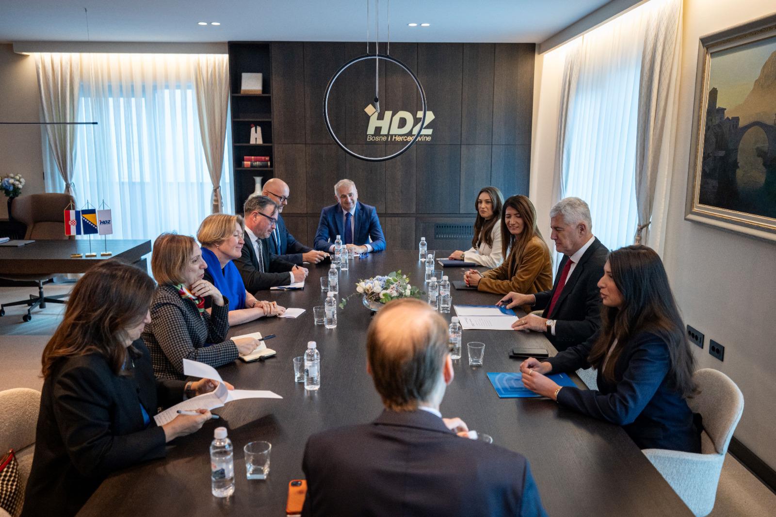 Danas je u Domu HDZ-a BiH u Mostaru održan sastanak predsjednika Hrvatske demokratske zajednice Bosne i Hercegovine i dopredsjedatelja Doma naroda Parlamentarne skupštine Bosne i Hercegovine dr. Dragana Čovića te dopredsjednice HDZ-a BiH i zastupnice u Zastupničkom domu Parlamentarne skupštine BiH Darijane Filipović s veleposlanicima Skupine prijatelja Zapadnog Balkana.