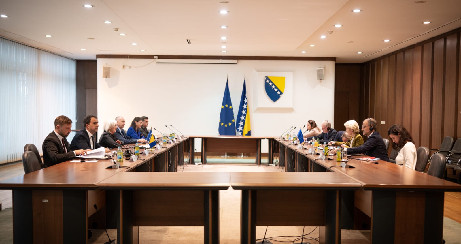 Na sastanku se razgovaralo o aktivnostima na europskom putu naše zemlje, aktualnostima u Bosni i Hercegovini, regiji i Europskoj uniji, kao i budućim koracima. Predsjedateljica Krišto je upoznala predsjednicu Von der Leyen s ključnim temama na razini Vijeća ministara, kao i bitnim aspektima rada osobito do konca godine. Unatoč svim izazovima, Vijeće ministara kontinuirano radi i nastavit će tim smjerom, a usvajanje Reformske agende i Liste reformi najbolja je potvrda da će ova institucija i dalje činiti sve u okviru svojih nadležnosti kako bi poduzimala najvažnije korake na europskom putu. (Umjesto Uz sve izazove, Vijece ministara je kontinuirano radilo i nastavlja u tome smjeru, a usvajanje Reformske agende i Liste reformi je najbolja potvrda da ce ova institucija i dalje činiti sve iz svoje nadležnosti da vuče najvažnije korake na europskom putu.