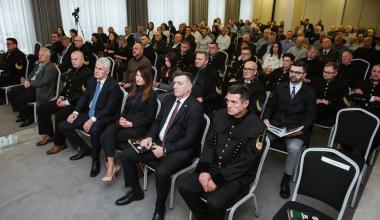 Nazočnima se obratio i predsjednik Hrvatskog narodnog sabora BiH dr. Draganu Čoviću, kojemu je u znak priznanja za podršku i potporu Društvu uručena plaketa zahvale. Dr. Čović naglasio je naglasio važnost rudarstva i prirodnih resursa te povezao rad Društva s očuvanjem okoliša i tehnološkim razvojem, naglašavajući potrebu za održivim korištenjem resursa i kružnom ekonomijom. Čestitao je autorima Monografije i svima koji su u proteklih 30 godina svojim radom doprinijeli razvoju struke, naglašavajući važnost znanosti, obrazovanja i odgovornog upravljanja prirodom za buduće generacije.