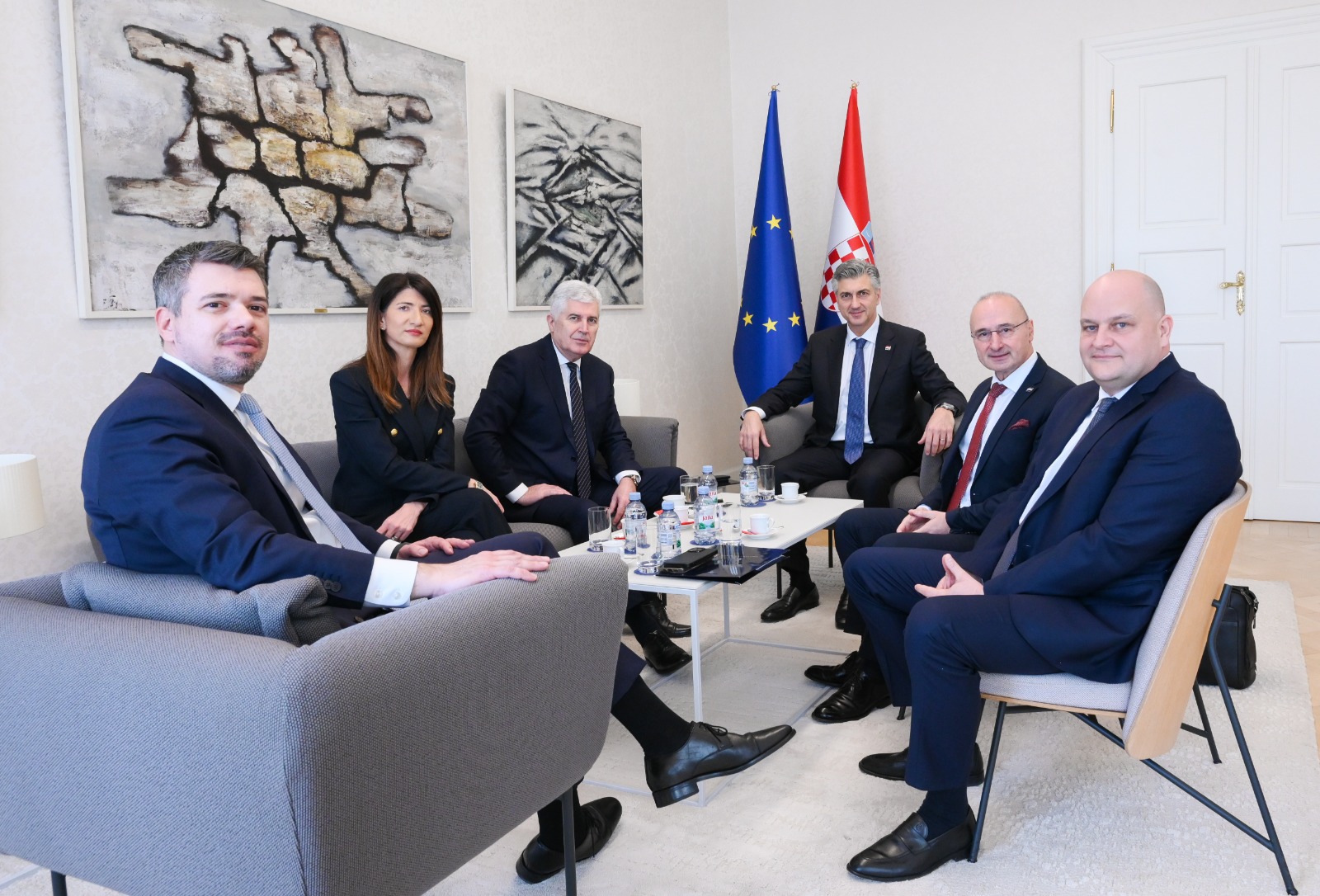 Dopredsjedatelj Doma naroda Parlamentarne skupštine Bosne i Hercegovine dr. Dragan Čović i zastupnica u Zastupničkom domu PS BiH Darijana Filipović sastali su se danas u Banskim dvorima s predsjednikom Vlade Republike Hrvatske Andrejem Plenkovićem te ministrom gospodarstva Antom Šušnjarom i ministrom vanjskih i europskih poslova Gordanom Grlićem Radmanom.