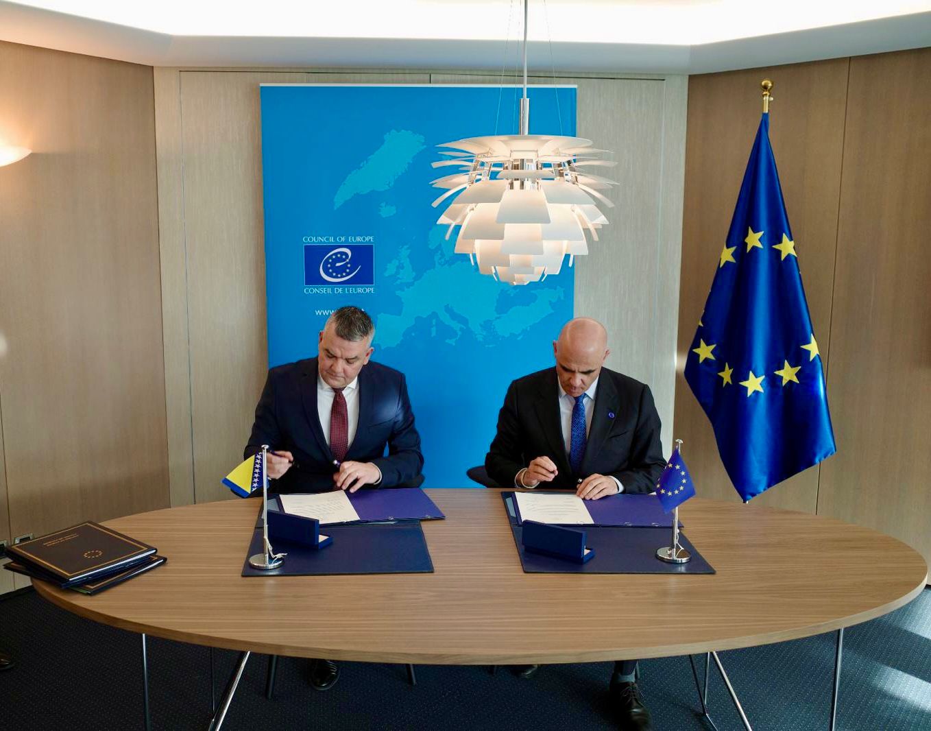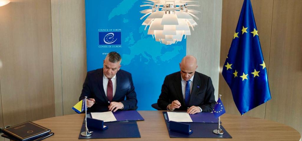 Ministar pravde Bosne i Hercegovine Davor Bunoza danas je u Strasbourgu, zajedno s glavnim tajnikom Vijeća Europe Alainom Bersetom, potpisao dvije konvencije Vijeća Europe: Konvenciju o zaštiti odvjetničke profesije i Konvenciju protiv trgovine ljudskim organima.