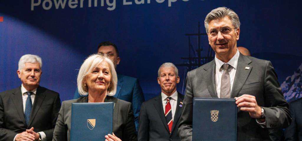Predsjedateljica Vijeća ministara BiH Borjana Krišto i predsjednik Vlade Republike Hrvatske Andrej Plenković potpisali su ovaj povijesni sporazum. Na svečanosti potpisivanja sudjelovao je i američki državni tajnik za energiju, Chris Wright, uz brojne druge visoke dužnosnike i zvanice prisutne na 10. obljetnici Inicijative Tri mora.