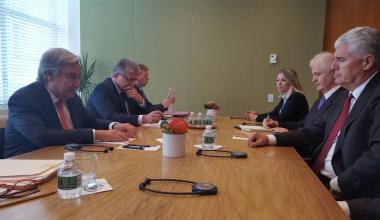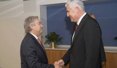 Također je informirao generalnog tajnika Guterresa o visokoj razini suradnje s Uredom rezidentne koordinatorice Ujedinjenih naroda i rezidentne predstavnice UNDP-a u Bosni i Hercegovini, te kako BiH visoko cijeni pomoć koju ovaj ured, ali i ostale specijalizirane agencije UN pružaju našoj zemlji, posebice u oblasti ekonomskog razvoja i u kontekstu implementacije Agende 2030. Bilo je govora i o sudjelovanju BiH u mirovnim operacijama UN, te da je ukupno 45 bh. službenika u mirovnim misijama UN kao izravni doprinos očuvanju svjetskog mira i stabilnosti. Na kraju susreta dr. Čović je uputio poziv glavnom tajniku Guterresu da u skorijoj budućnosti posjeti BiH.