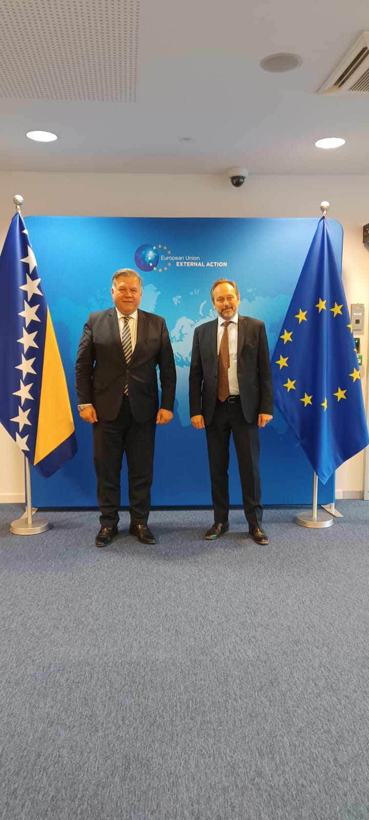 Zamjenik ministra vanjskih poslova Bosne i Hercegovine mr. sc. Josip Brkić, sastao se 23. rujna 2025. godine u Bruxellesu s generalnim direktorom za susjedstvo i pregovore o proširenju Europske unije Gert Janom Koopmanom te direktorom za Zapadnu Europu (EURCA WEST) u okviru Europske službe za vanjsko djelovanje Emanuelom Giaufretom.
