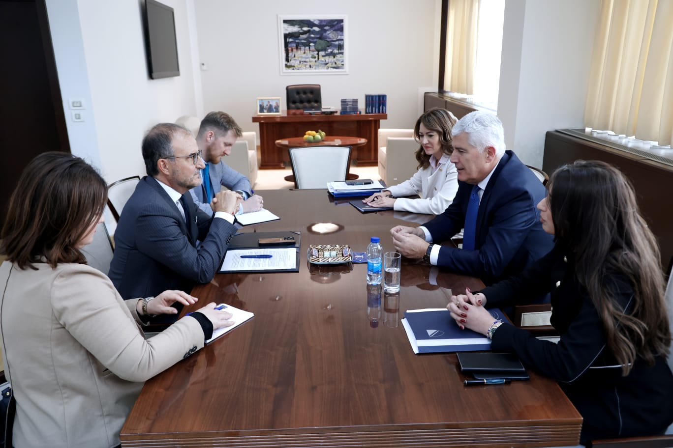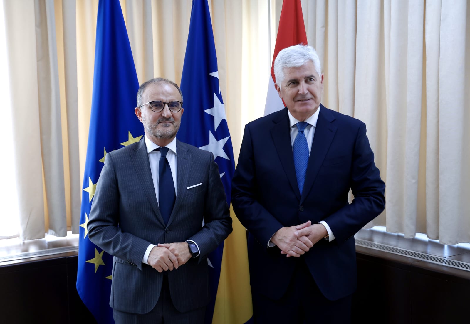 “Važan razgovor s veleposlanikom Europske unije i posebnim predstavnikom EU Luigijem Sorecom u Sarajevu. Razgovarali smo o trenutnoj političkoj situaciji u Bosni i Hercegovini te nastavljamo zajednički raditi na osiguravanju napretka na europskom putu, stabilnosti i reformama. Politički dijalog i ustavni okvir Bosne i Hercegovine moraju biti zaštićeni.”
