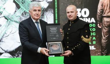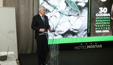 Nazočnima se obratio i predsjednik Hrvatskog narodnog sabora BiH dr. Draganu Čoviću, kojemu je u znak priznanja za podršku i potporu Društvu uručena plaketa zahvale. Dr. Čović naglasio je naglasio važnost rudarstva i prirodnih resursa te povezao rad Društva s očuvanjem okoliša i tehnološkim razvojem, naglašavajući potrebu za održivim korištenjem resursa i kružnom ekonomijom. Čestitao je autorima Monografije i svima koji su u proteklih 30 godina svojim radom doprinijeli razvoju struke, naglašavajući važnost znanosti, obrazovanja i odgovornog upravljanja prirodom za buduće generacije.