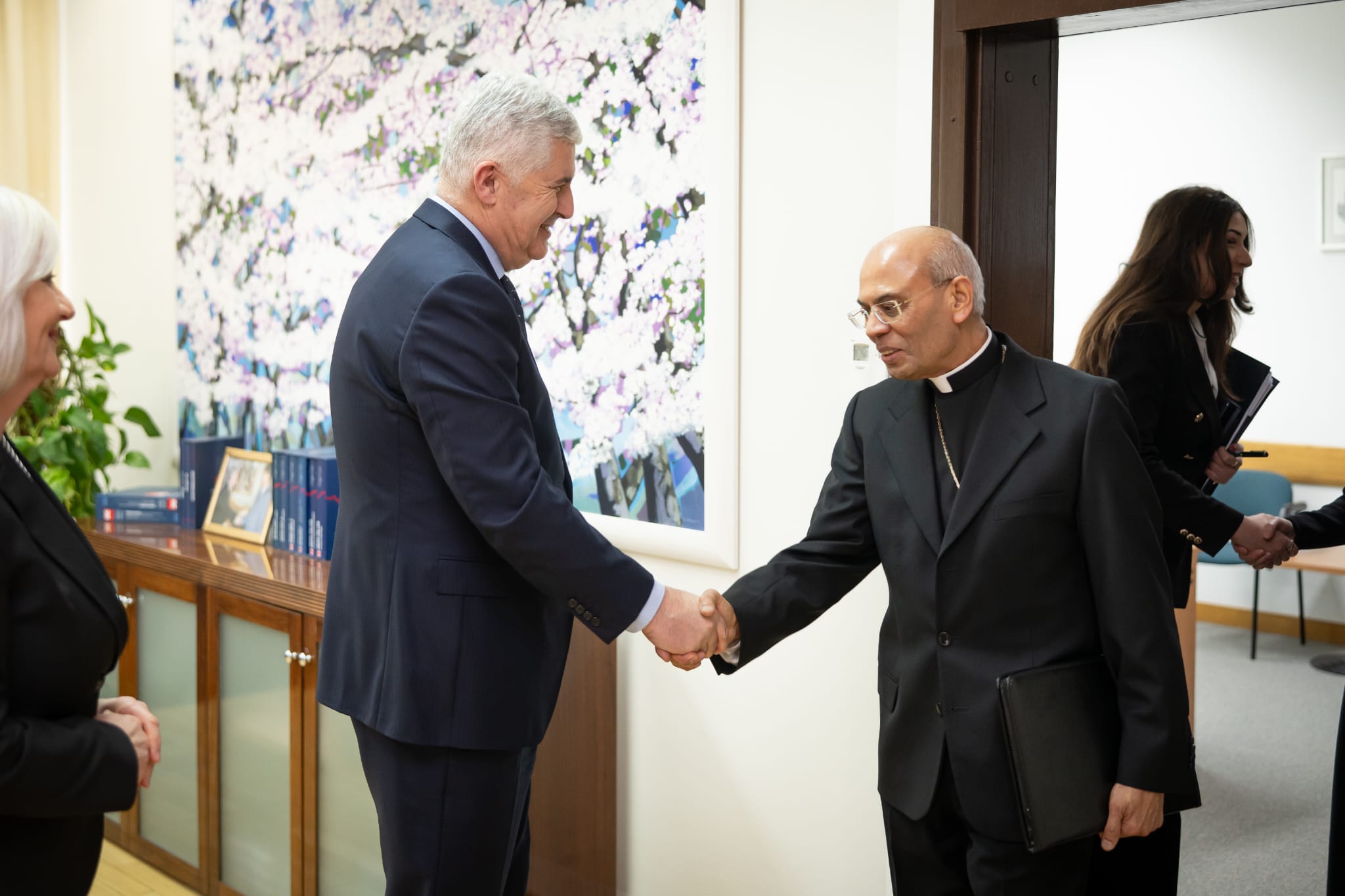 Dopredsjedatelj Čović je ovom prilikom naglasio duboku zahvalnost za trajnu podršku Svete Stolice Bosni i Hercegovini, ističući kako vrijednosti suradnje, međusobnog poštivanja i dijaloga imaju ključnu ulogu u dugoročnoj izgradnji stabilnog i prosperitetnog društva. Posebno je ukazao na potrebu zaštite prava hrvatskoga naroda kao konstitutivnoga naroda, istaknuvši neophodnost izmjena Izbornog zakona, kao i očuvanje katoličkih vrijednosti, kulturnog i povijesnog naslijeđa u Bosni i Hercegovini.