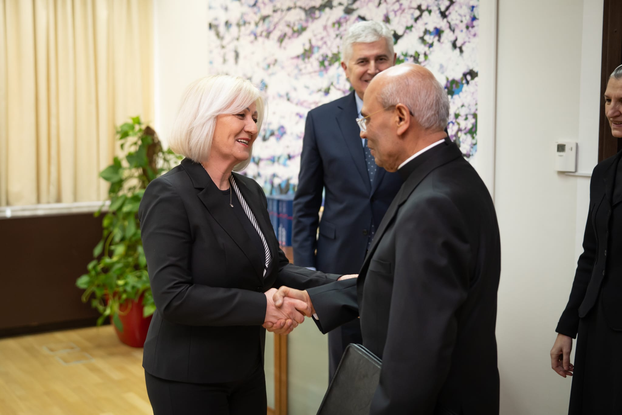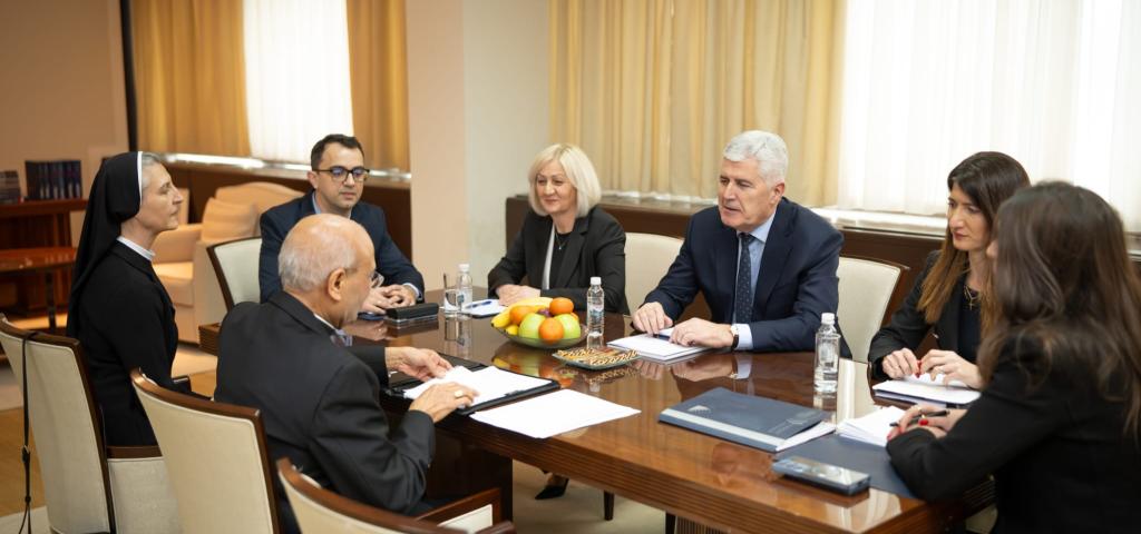 Dopredsjedatelj Doma naroda Parlamentarne skupštine Bosne i Hercegovine dr. Dragan Čović, predsjedateljica Vijeća ministara BiH Borjana Krišto i zastupnica u Zastupničkom domu Parlamentarne skupštine BiH Darijana Filipović održali su danas u prostorijama Parlamentarne skupštine u Sarajevu sastanak s apostolskim nuncijem u Bosni i Hercegovini, nadbiskupom Francisom Assisijem Chullikattom.