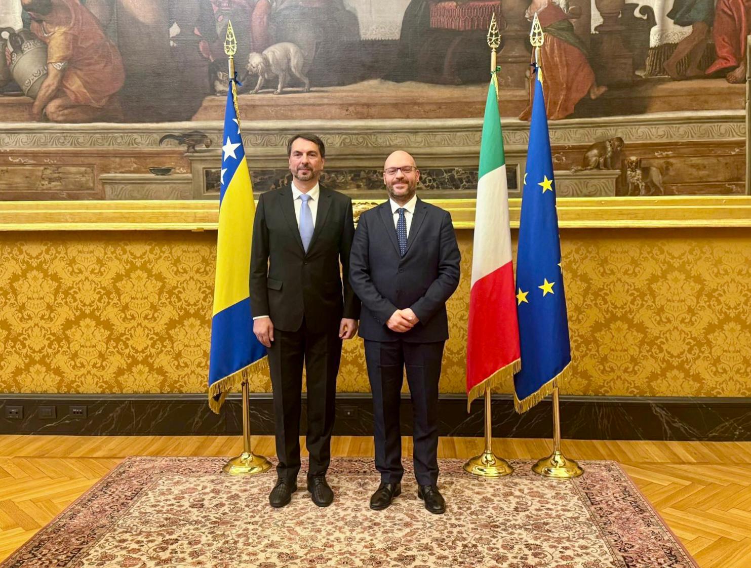 Predsjednik Zastupničkog doma Parlamenta Republike Italije Lorenzo Fontana istaknuo je da bi priključenje Bosne i Hercegovine Europskoj uniji predstavljalo važan geopolitički i sigurnosni iskorak, ne samo za Bosnu i Hercegovinu i regiju u cjelini nego i za Europsku uniju, naglasivši da je europska perspektiva BiH od posebnog značaja za Italiju, imajući u vidu geografski položaj Bosne i Hercegovine, njen doprinos regionalnoj stabilnosti, te sigurnost vanjskih granica Europske unije.
