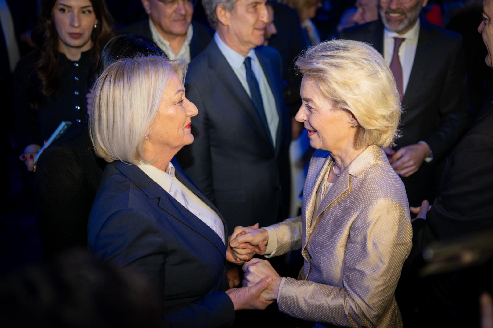 Predsjednica Europske komisije Ursula von der Leyen u svom je obraćanju kazala kako se Europa nalazi u vrlo opasnom trenutku, navodeći primjere „od rata u Ukrajini do rata na Bliskom istoku, od turbulentnih ekonomskih izazova izvana do onih koji nas pokušavaju podijeliti iznutra“. Govoreći o Uniji mira i prosperiteta, demokracije i sigurnosti istaknula je želju da se Europskoj uniji što prije pridruže „prijatelji sa Zapadnog Balkana“ i postanu dio EU.