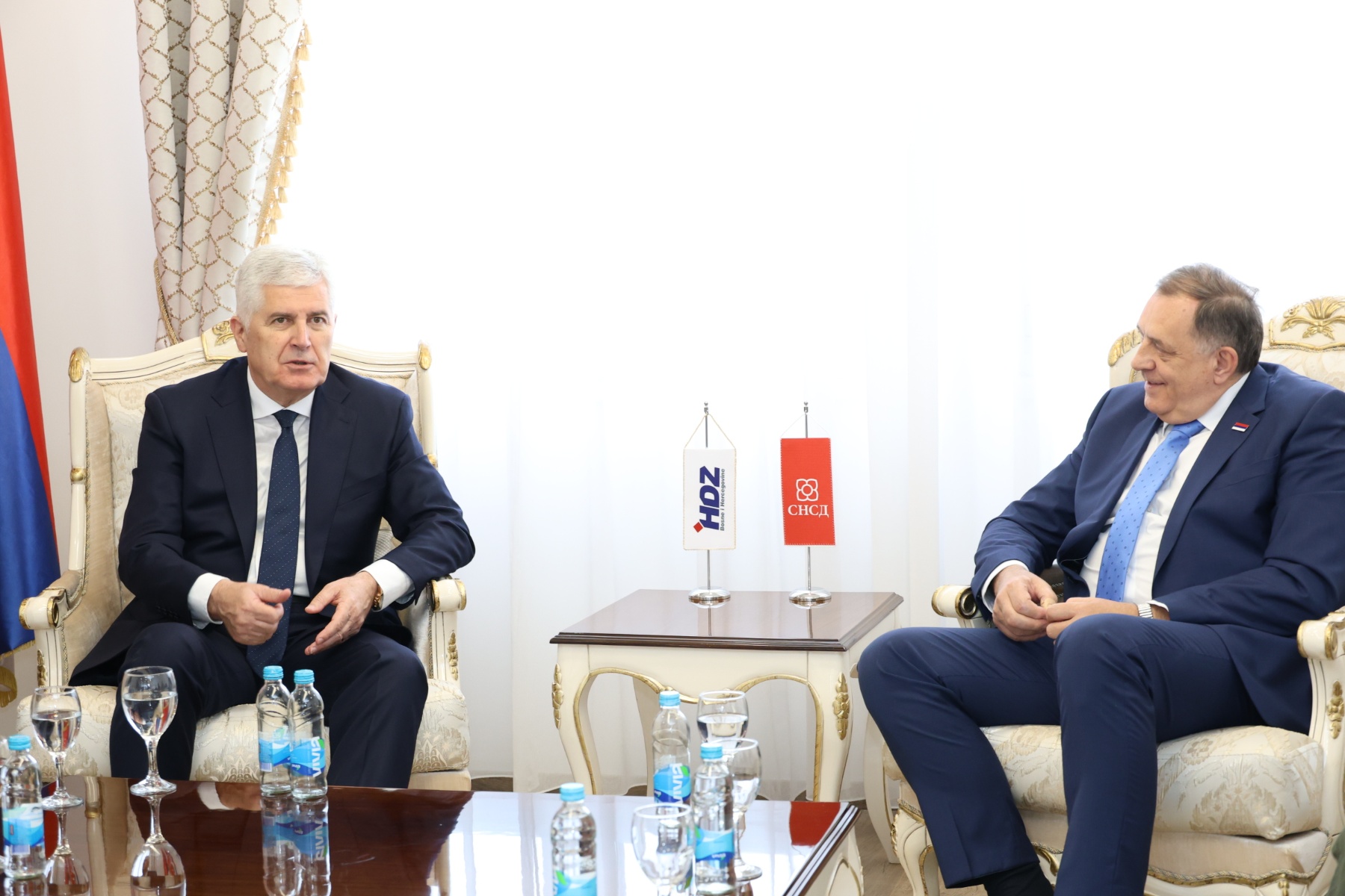 Aktualne političke okolnosti i potreba nastavka dijaloga o funkcioniranju vlasti na razini Bosne i Hercegovine bile su povod sastanka izaslanstava HDZ-a BiH i SNSD-a, predvođenih predsjednikom HDZ-a BiH dr. Draganom Čovićem i predsjednikom SNSD-a Miloradom Dodikom u Banjoj Luci. Uz predsjednika Čovića, u izaslanstvu HDZ-a BiH bile su i zamjenica predsjednika Borjana Krišto te dopredsjednica i kandidatkinja za hrvatskog člana Predsjedništva BiH Darijana Filipović, dok su u izaslanstvu SNSD-a bili predsjednik Savjeta za društveno-ekonomska pitanja Nikola Špirić i generalni tajnik Srđan Amidžić.