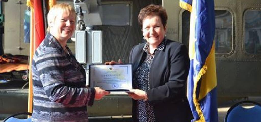 Nakon obraćanja potpisan je sporazum o primopredaji doniranih sredstava i uručena zahvalnica Ministarstva obrane BiH veleposlanici Hohmann.