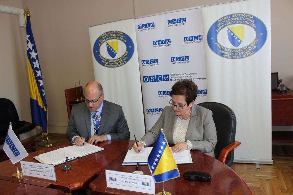 Ministrica obrane BiH Marina Pendeš i šef Misije OESS u BiH veleposlanik Jonathan Moore potpisali su 29.05.2017. godine u Ministarstvu obrane BiH Protokol o realizaciji projekta za poboljšanje sigurnosti na lokacijama skladišta i streljiva u BiH (SAFE-UP BiH) između OESS misije u BiH i Ministarstva obrane BiH.
