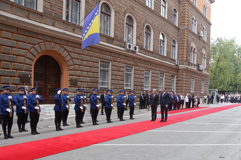Imali smo izuzetno konstruktivne razgovore i vjerujem da će se atmosfera i duh ovog dvodnevnog posjeta predsjednika i njegovog izaslanstva nastaviti u jednoj ovakvoj dinamici, s mnoštvom tema koje već dugo opterećuju odnose u Bosni i Hercegovini, na našem prostoru i šire, koje možemo zajednički rješavati da posluže kao primjer i za druge probleme koje Bosna i Hercegovina ima sa svojim susjedima.
