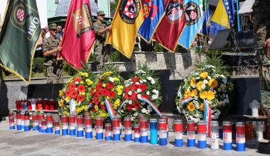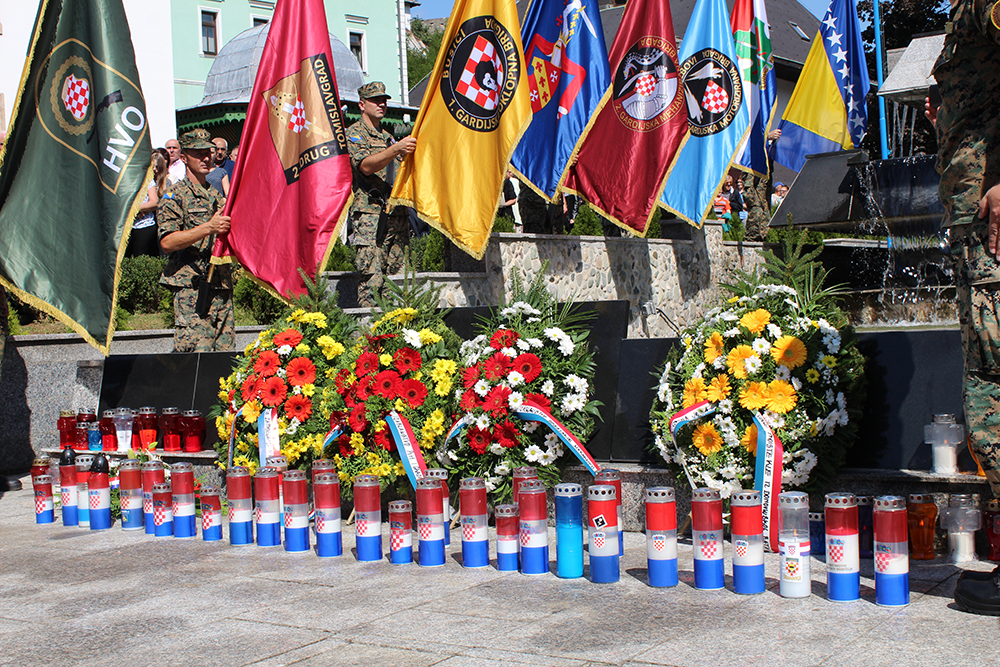 Nakon toga, svečano je razvijena zastava hrvatskog naroda na tvrđavi te su položeni vijenci na spomen obilježju poginulim braniteljima.