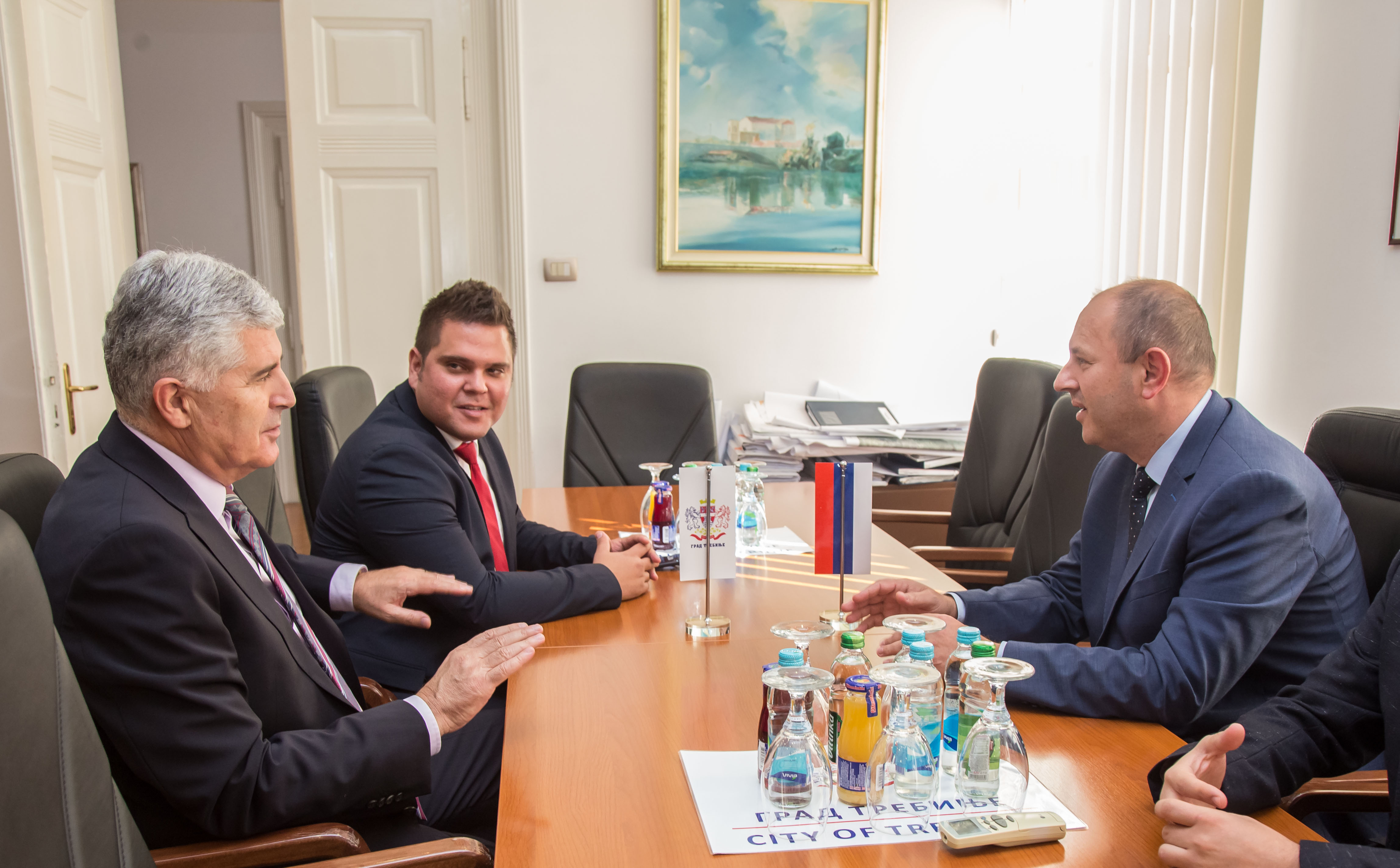 Nakon razgovora sa vladikom Grigorijem, dr. Čović se u gradskoj upravi sastao s gradonačelnikom Trebinja Lukom Petrovićem, gdje su razgovarali o napretku suradnje Mostara i Trebinja.