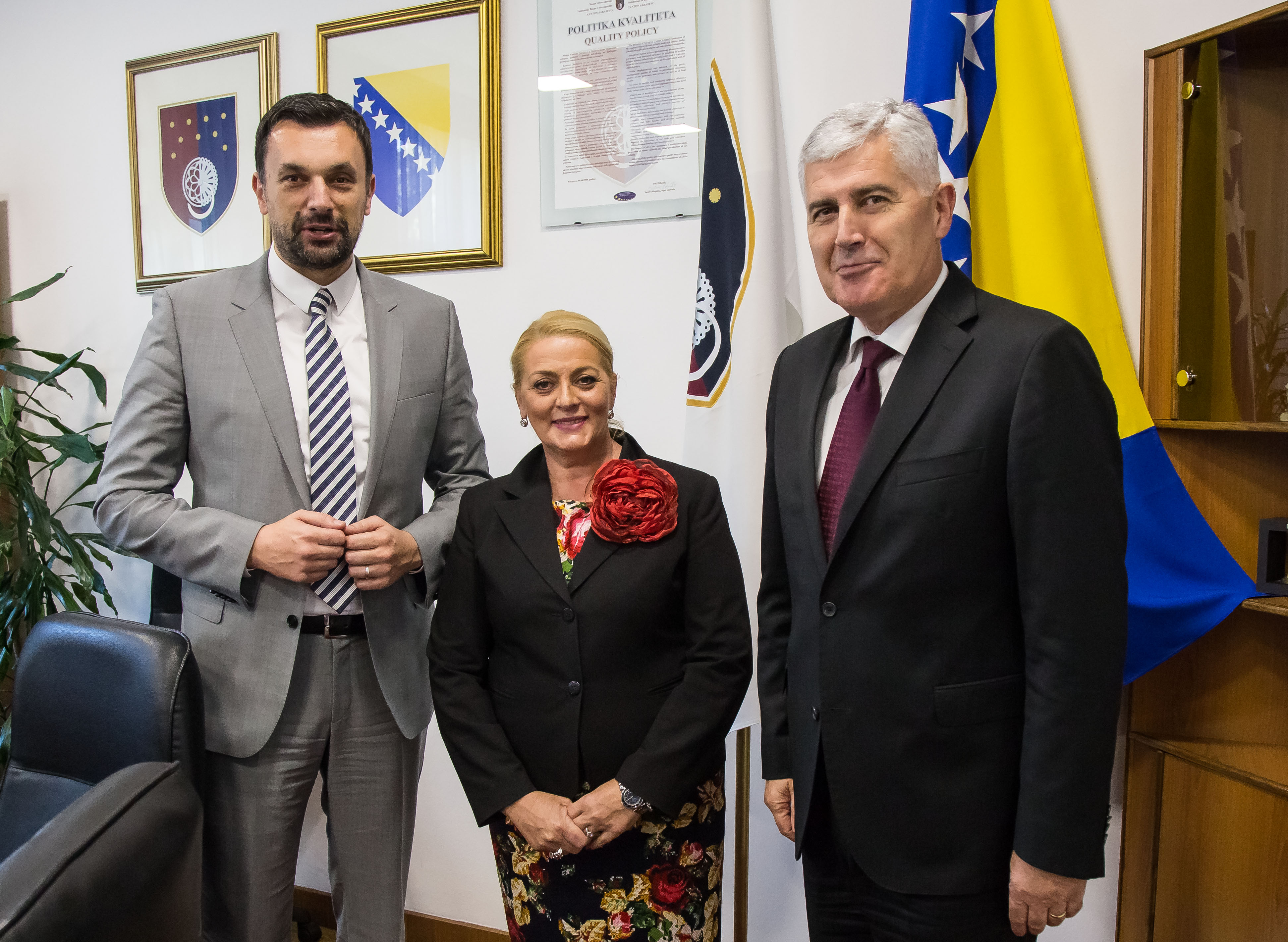 U okviru planiranog niza susreta s predstavnicima svih razina vlasti u Bosni i Hercegovini, predsjedatelj Predsjedništva BiH dr. Dragan Čović susreo se danas u zgradi Vlade Sarajevske županije s premijerom g. Elmedinom Konakovićem i resornim ministrima.