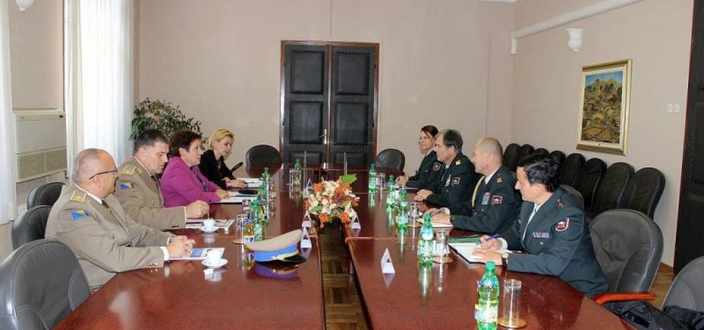 Ministrica Pendeš informirala je goste iz Slovenije o trenutnim aktivnostima MO i OS BiH te naglasila izuzetnu bilateralnu suradnju u oblasti obrane ostvarenu između dva ministarstva u proteklom razdoblju.