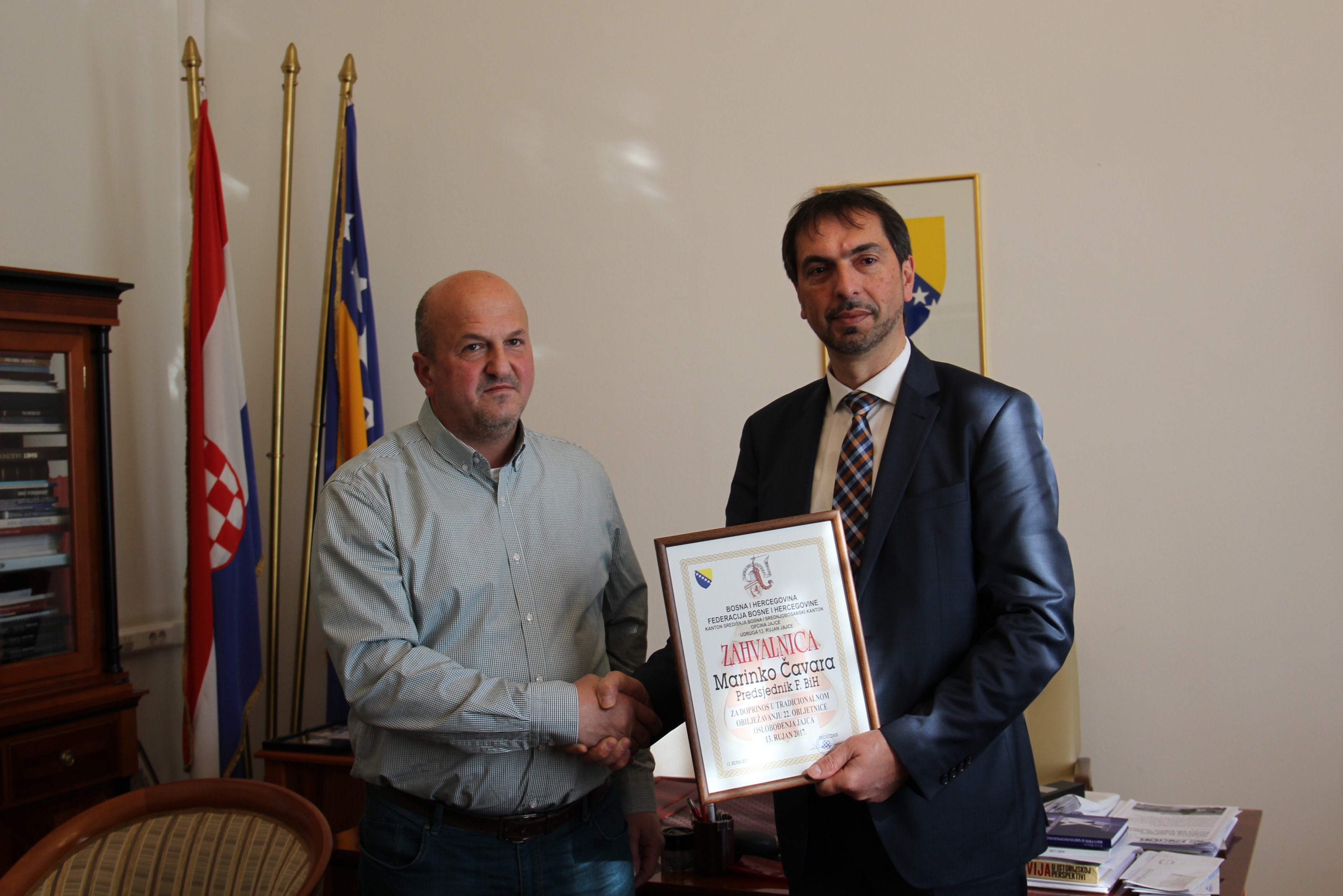 Danas je dopredsjednik HDZ-a BiH i Predsjednik Federacije BiH Marinko Čavara primio izaslanstvo Općine Jajce u sastavu Ivo Šimunović predsjedatelj Općinskog vijeća, Josip Topić vijećnik Općinskog vijeća, Anto Lukić predsjednik Udruge dragovoljaca domovinskog rata i Dragan Bungić predstavnik Udruge obitelji poginulih i nestalih branitelja.