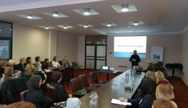 Kako bi se djelomično izborile s navedenim preprekama, prof.dr. Ilija Musa sa Filozofskog fakulteta Sveučilišta u Mostaru predavao je o poslovnoj komunikaciji koja je iznimno važna u svakom poslu i zanimanju. Tako je kroz brojne primjere govorio o komunikaciji općenito, određenim konkretnim slučajevima, načinima predstavljanja, pozdravljanja, oblačenja i ophođenja ali i komunikacijom s medijima odnosno načinima na koji žene poduzetnici mogu kroz odnose s javnošću pomoći sebi ali i tvrtki koju predstavljaju.