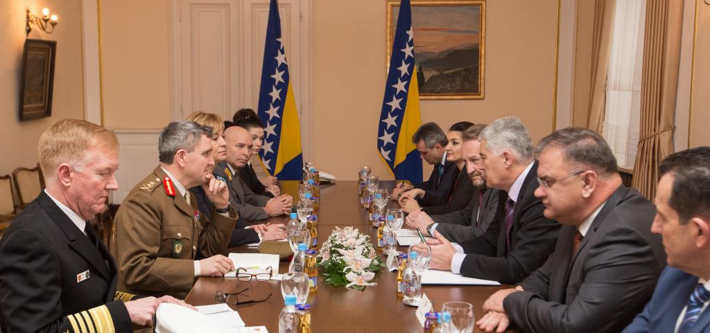 Članovi Predsjedništva BiH su na početku susreta upoznali goste s aktualnom situacijom u zemlji, s posebnim osvrtom na provedbu reformi. Istaknuta je opredijeljenost da se ulože dodatni napori kako bi se prevazišle prepreke i dinamizirale aktivnosti na nužnim reformama. Izraženo je zadovoljstvo postignutim napretkom u procesu reforme obrane, što se posebice odnosi na usvajanje dokumenta Pregled obrane.
