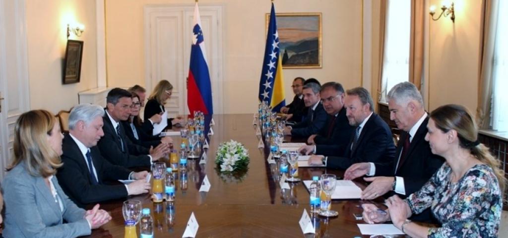 Govoreći o bilateralnim odnosima Bosne i Hercegovine i Republike Slovenije, istaknuto je da su tradicionalno dobri, te da su ekonomski odnosi razvijeni i da je trgovinska razmjena u proteklih nekoliko godina povećana i u velikoj mjeri izbalansirana. Istaknuta je opredijeljenost za unapređenje dobrosusjedskih odnosa, kao i regionalne suradnje po pitanju europske perspektive, sigurnosti i migracija u okviru aktualnih inicijativa, procesa i foruma, naročito Brdo - Brijuni procesa. Izraženo je zadovoljstvom intenzitetom posjeta na visokoj razini, kao i razvojem političkog dijaloga između Bosne i Hercegovine i Republike Slovenije.