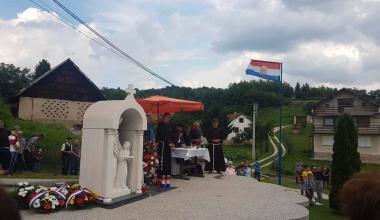 Uoči svete mise izaslanstva su položila vijence i svijeće na spomen obilježje podignuto u ovome mjestu.