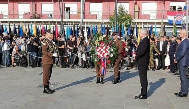 Program je počeo u 6.30 sati budnicom koju je izveo Orkestar Oružanih snaga RH, nakon čega je položen zajednički vijenac na Spomeniku hrvatske pobjede 'Oluja 95'.