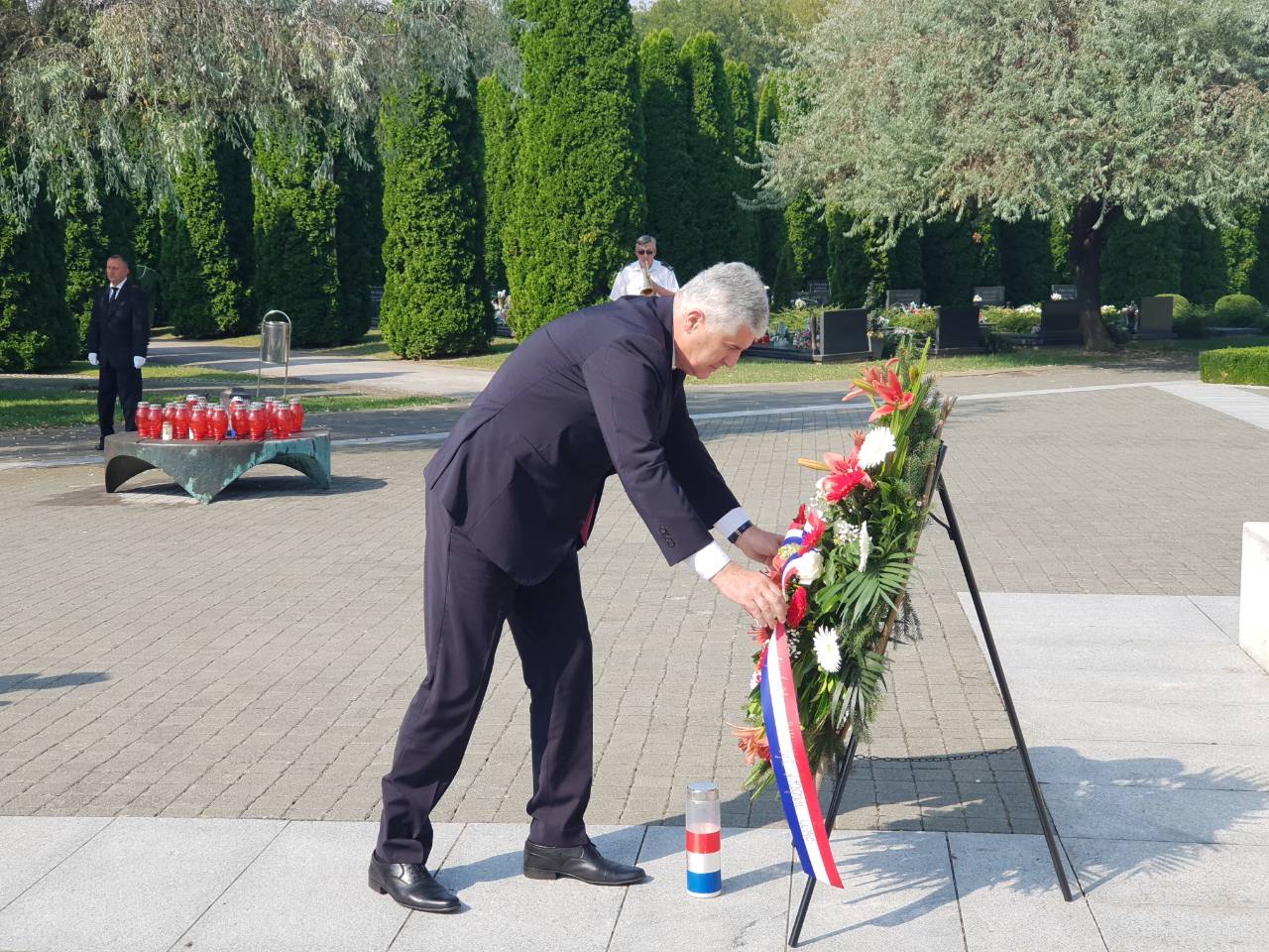 Predsjednik Čović, župan Galić i gradonačelnik Penava položili su zajednički vijenac, te upalili svijeće te odali počast stradalima u obrani Vukovara na Memorijalnom groblju Domovinskog rata.