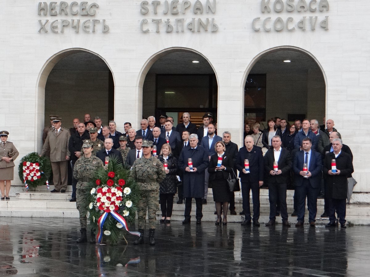 Nakon središnje svečanosti održane u kiseljačkoj vojarni „Mato Lučić Maturica“, program svečanog obilježavanja večeras je završio u Mostaru, gdje je u Katedrali Marije Majke Crkve služena sveta misa za poginule i umrle branitelje, a potom su položeni vijenci na središnjem spomen obilježju ispred Hrvatskog doma herceg Stjepana Kosače.