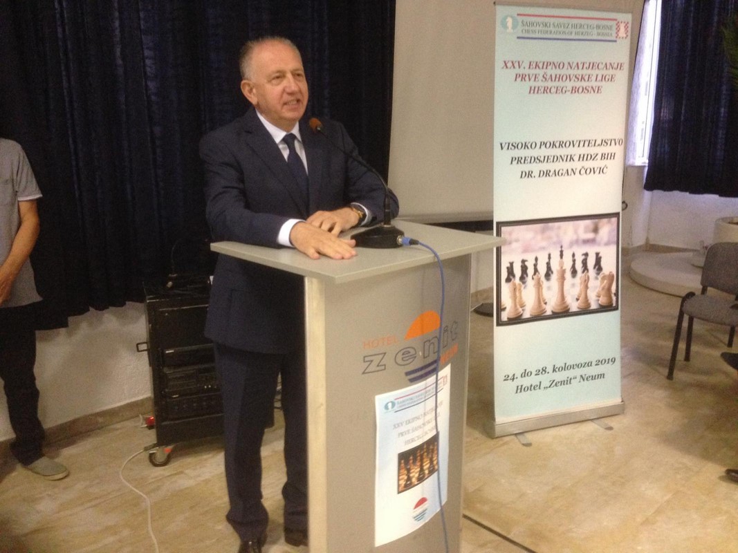 Pod pokroviteljstvom predsjednika Hrvatskog narodnog sabora i HDZ-a BiH dr. Dragana Čovića, a u organizaciji Šahovskoga saveza Herceg - Bosne, večeras je u hotelu Zenit u Neumu otvoreno 25. ekipno natjecanje Prve šahovske lige Herceg-Bosne.