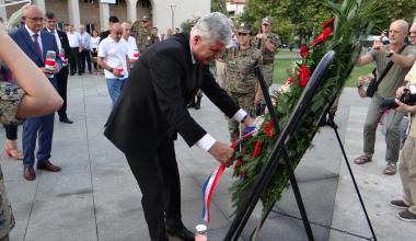 Prije održane svečane akademije, prethodilo je polaganje vijenca i svijeća pred Spomenikom hrvatskim braniteljima ispred Hrvatskog doma hercega Stjepana Kosače. Vijence je položilo izaslanstvo Hrvatskog narodnog sabora BiH koje je predvodio predsjednik dr. Dragan Čović.