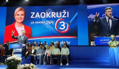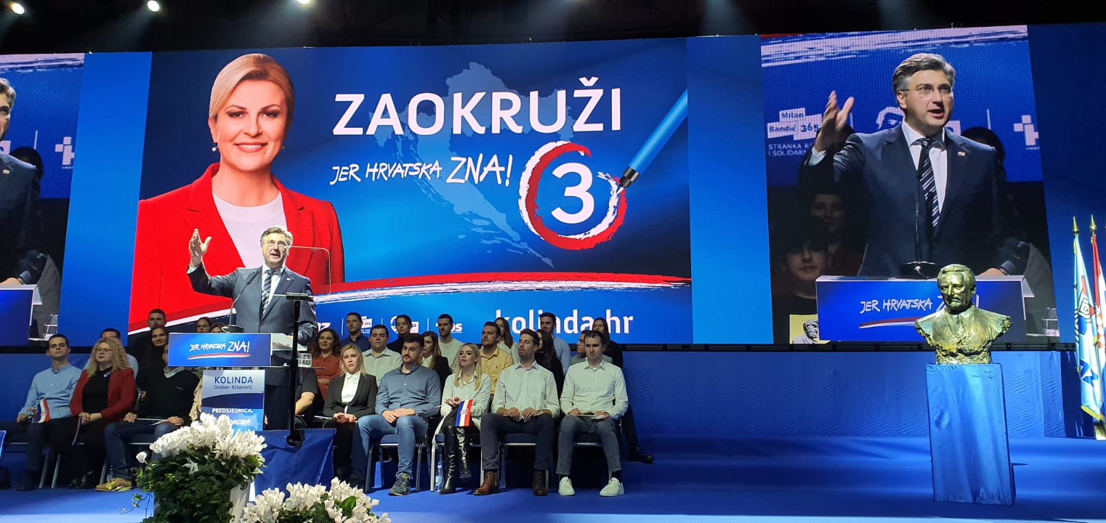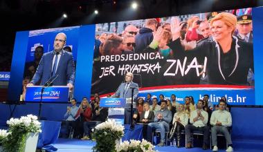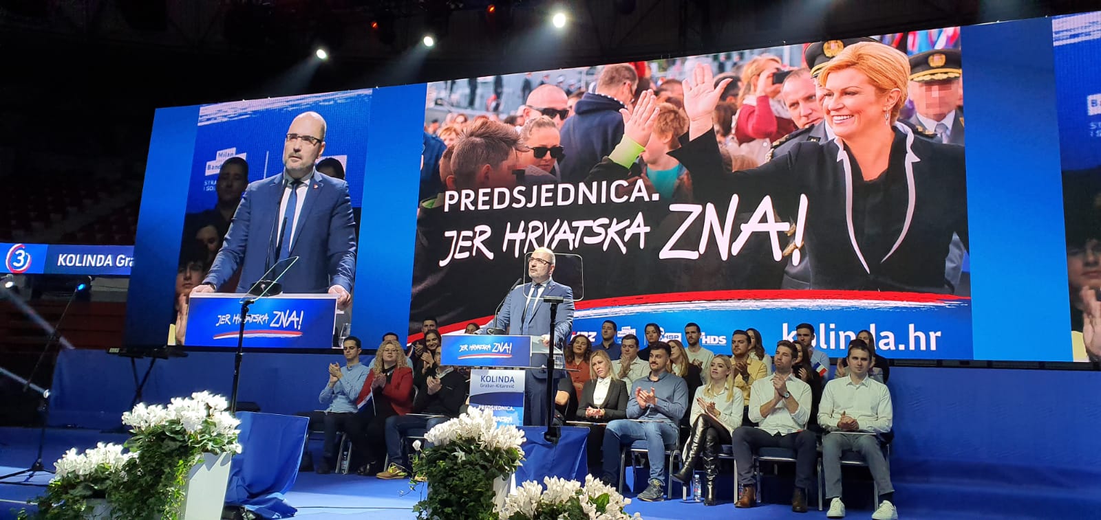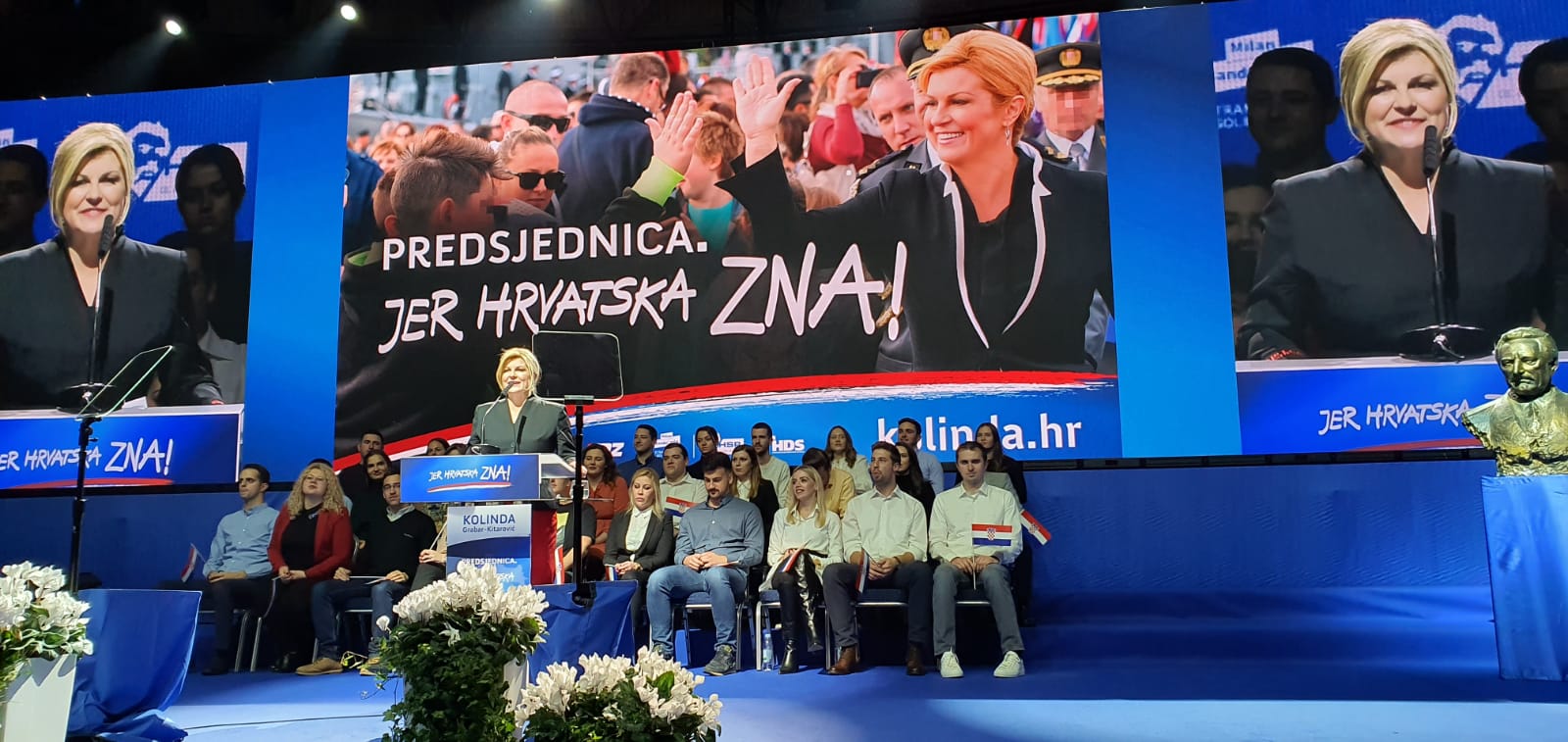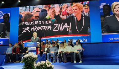 U zagrebačkoj dvorani Dražena Petrovića predsjednička kandidatkinja HDZ-a Republike Hrvatske Kolinda Grabar-Kitarović održala je središnji predizborni skup na kojemu je bilo nekoliko tisuća ljudi.