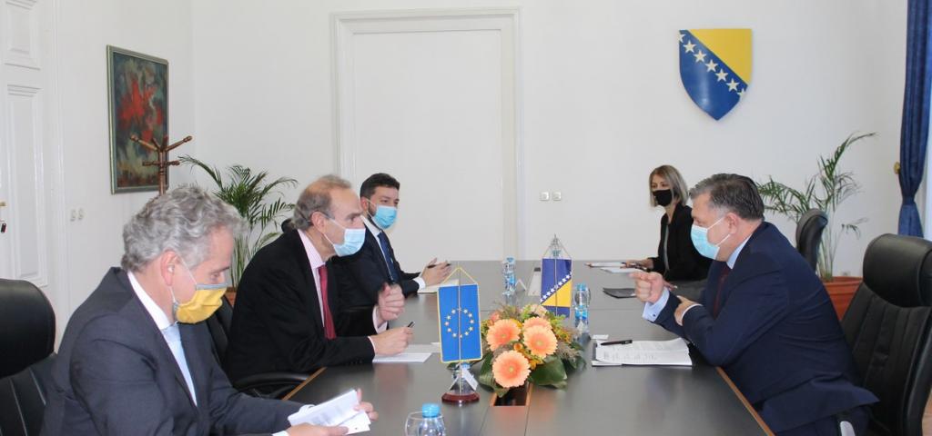 Istaknuo je da Bosna i Hercegovina pozdravlja odluku Europske komisije od 6. listopada 2020. godine kojom je usvojena „Komunikacija o EU politici proširenja za 2020. godinu“, „Izvještaj o Bosni i Hercegovini za 2020. godinu“, kao i „Ekonomski i investicijski plan za zapadni Balkan“ i „Upute za provedbu Zelene agende za zapadni Balkan“. BiH provodi aktivnosti i procedure neophodne za ispunjavanje zahtjeva Europske komisije iz Mišljenja, ovogodišnjeg izvještaja, te dva ekonomska dokumenta. Istaknuo je da su stručna i financijska pomoć Europske unije u procesu integracije od velike važnosti za dalji napredak na Bosne i Hercegovine na EU putu. Podcrtao je važnost nastavka zajedničkog rada na ljudskoj i infrastrukturnoj povezanosti, ekonomskom razvitku, vladavini zakona, suzbijanju i borbi protiv korupcije, borbi protiv terorizma, ekstremizma, radikalizacije i organiziranog kriminala, kao i sprečavanja ilegalnih migracija. Iskazao je uvjerenje da je zapadni Balkan strateški cilj Europske unije i da će se potpora i pomoći ovoj regiji nastaviti.