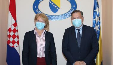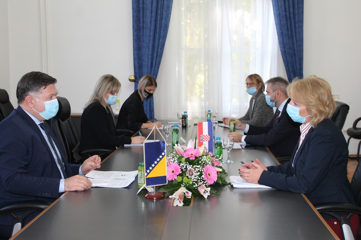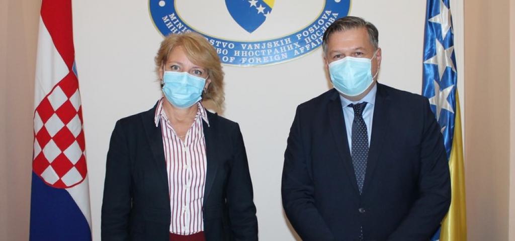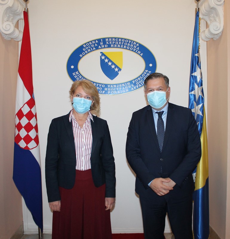Zamjenik ministrice vanjskih poslova Bosne i Hercegovine mr.sc. Josip Brkić i državna tajnica za Europu u Ministarstvu vanjskih i europskih poslova Republike Hrvatske Andreja Metelko-Zgombić predvodili su izaslanstva dvaju ministarstava na bilateralnim konsultacijama koje su održane 22. listopada 2020. godine u Sarajevu.