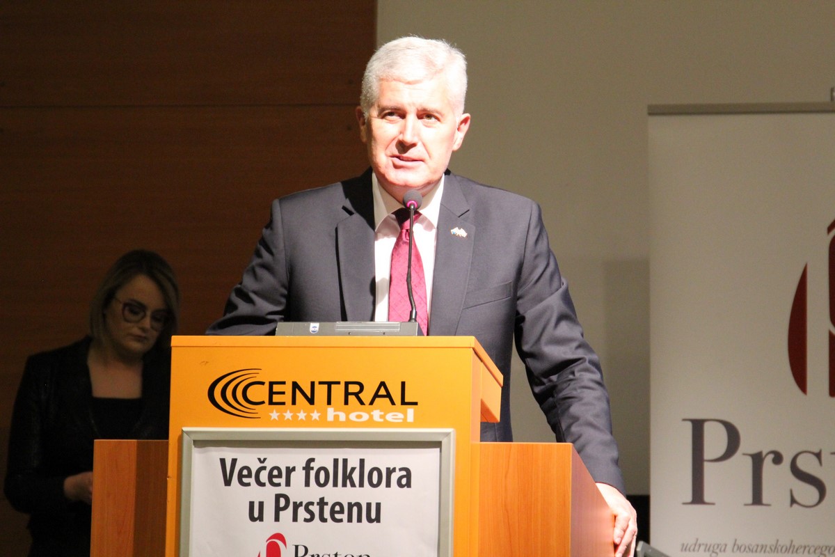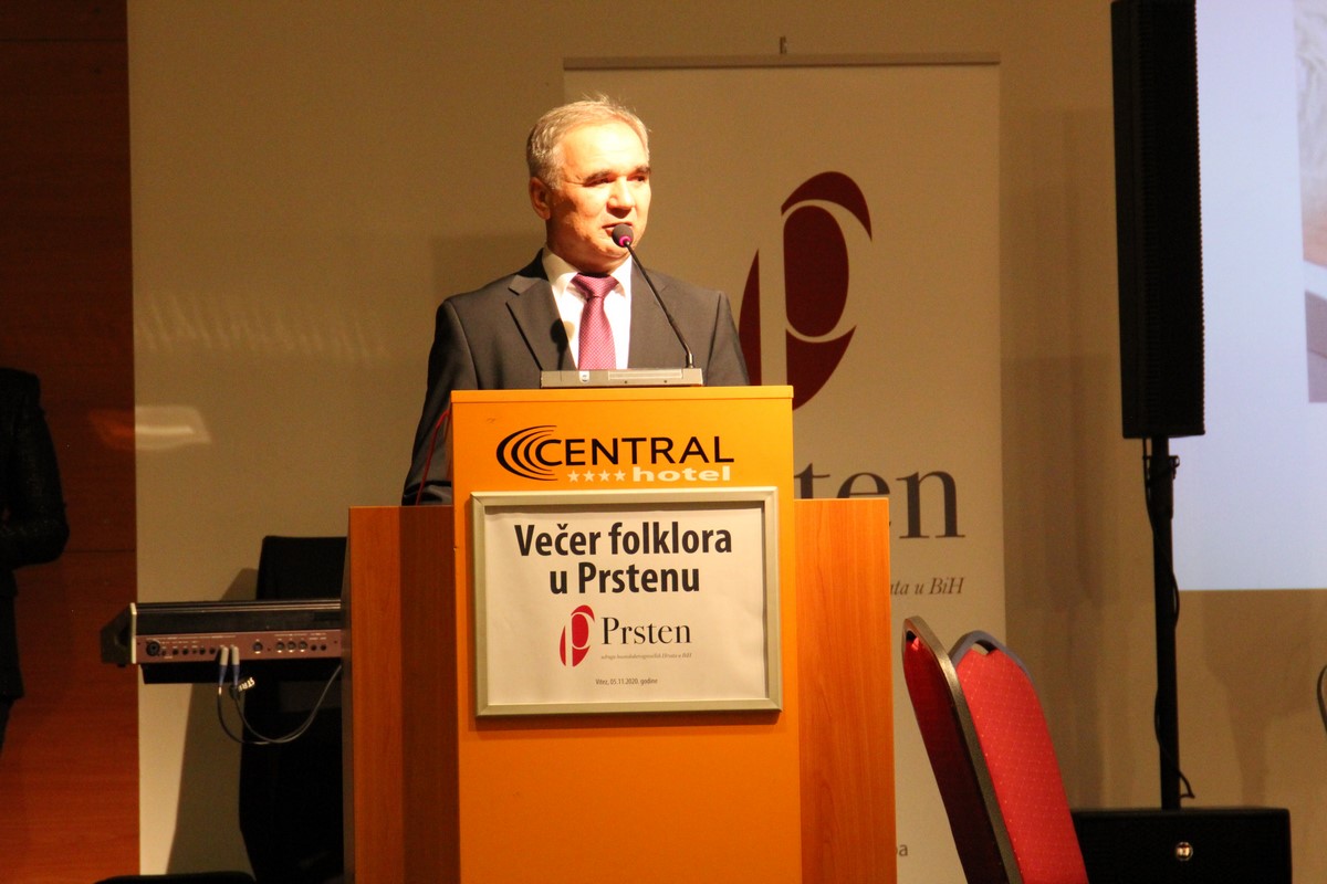 „Hvala našem Prstenu na ustrajnoj zaštiti naše tradicije i povezivanju Hrvata, kako u BiH, tako i u Republici Hrvatskoj i diljem svijeta. Ovo što smo večeras vidjeli na manifestaciji „Večer folklora“ neka bude ohrabrenje i motivacija svima nama da ustrajemo i da s ponosom možemo reći da smo dostojni predstavnici hrvatskog naroda. Udruga „Prsten“ uistinu na pravi način okuplja i povezuje Hrvate, kako večeras, tako i u drugim svojim aktivnostima, na čemu im iskreno još jednom čestitam i zahvaljujem“, kazao je predsjednik Čović.