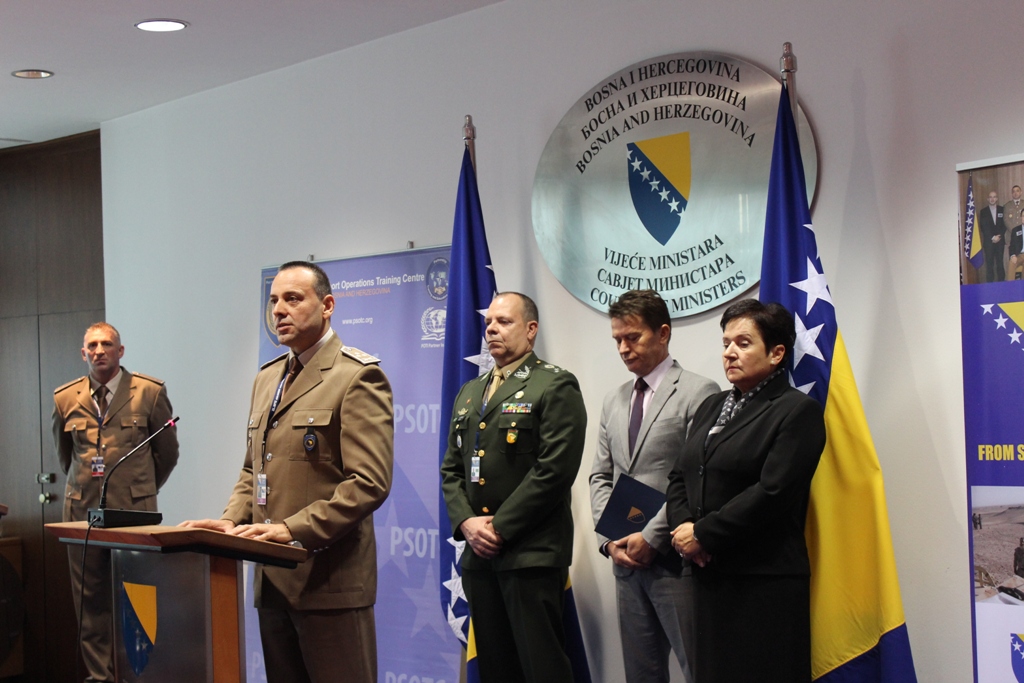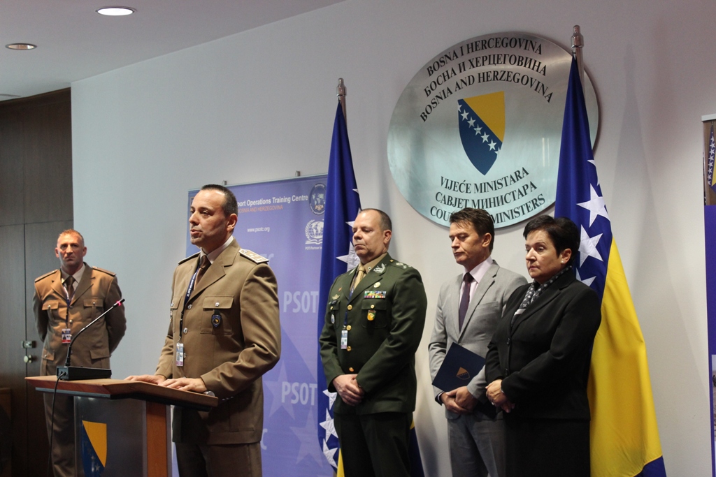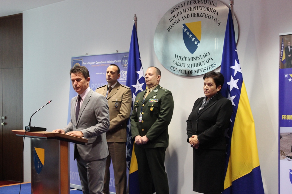 Nazočne je pozdravio Mijo Krešić, zamjenik ministra sigurnosti BiH, naglašavajući sudjelovanje policijskih službenika BiH u mirovnim operacijama širom svijeta i posebnu zahvalnost Središtu za obuku za mirovne operacije Oružanih snaga BiH, koji pruža neophodnu obuku za sudionike mirovnih operacija.