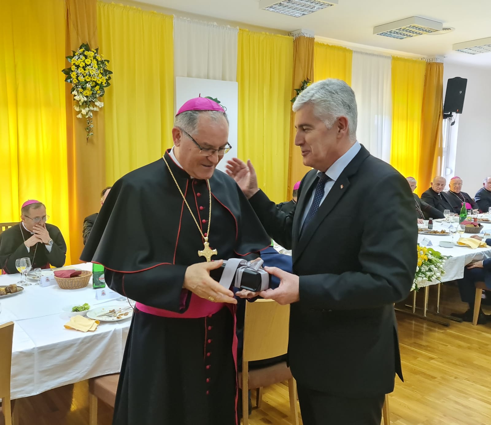 Novozaređenom kotorskom biskupu mons. Ivanu Štironji, u kratkom obraćanju, iskrenu čestitku uputio je dr. Dragan Čović, predsjednik Hrvatskog narodnog sabora i HDZ-a BiH. Kroz svjedočanstvo svećeničkog života, iskazanim povjerenjem i imenovanjem u zbor biskupa, predsjednik Čović pružio je potporu mons. Štironji u budućem apostoskom djelovanju.