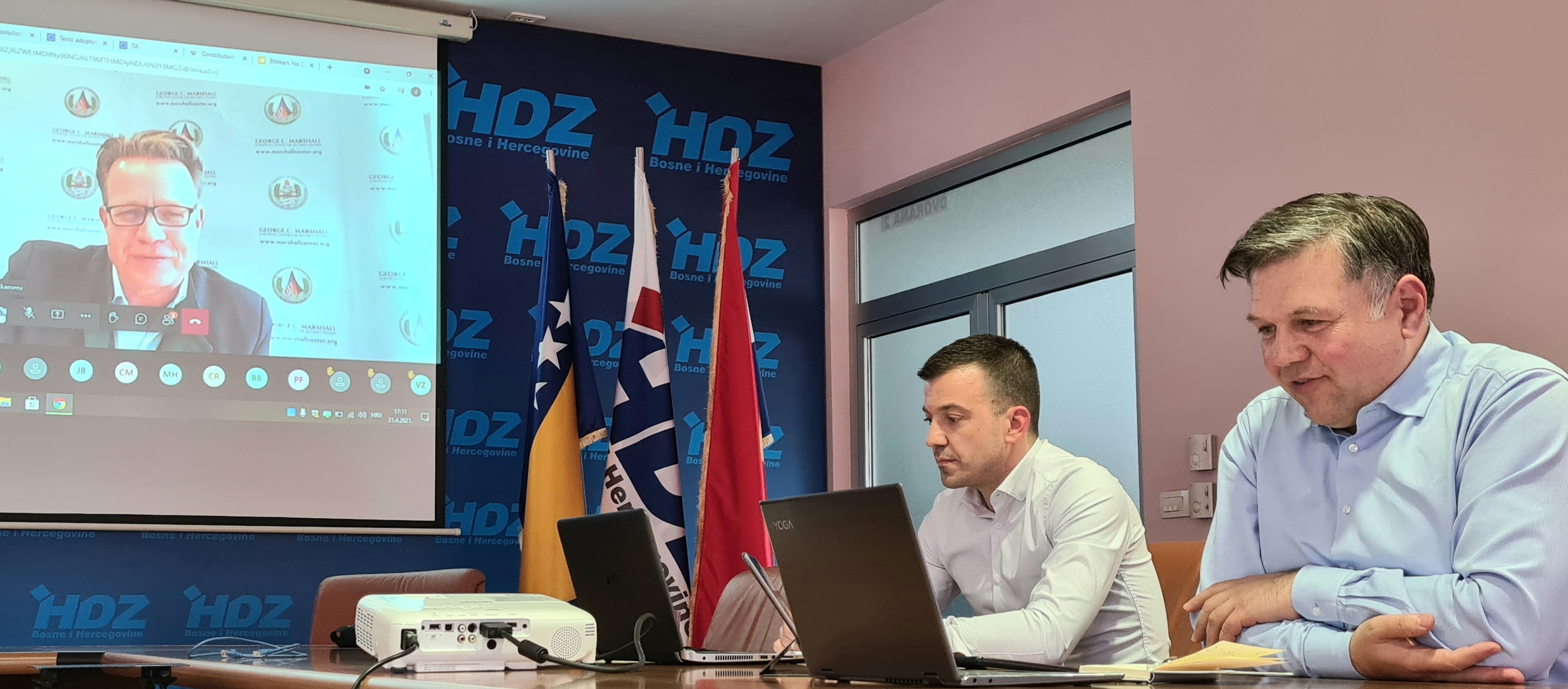 U Domu HDZ-a BiH u Mostaru zamjenik ministra vanjskih poslova BiH i međunarodni tajnik HDZ-a BiH Josip Brkić i izaslanik u Domu naroda Parlamenta FBiH i izvršni ravnatelj Političke akademije HDZ-a BiH Damir Džeba bili su sudionici razgovora o stanju u Bosni i Hercegovini, aktualnim procesima na unutarnjem i međunarodnom planu koje je organizirao George C. Marshall Centar za sigurnosne studije sa sjedištem u Njemačkoj.