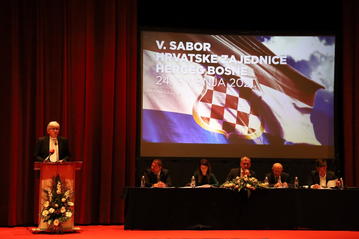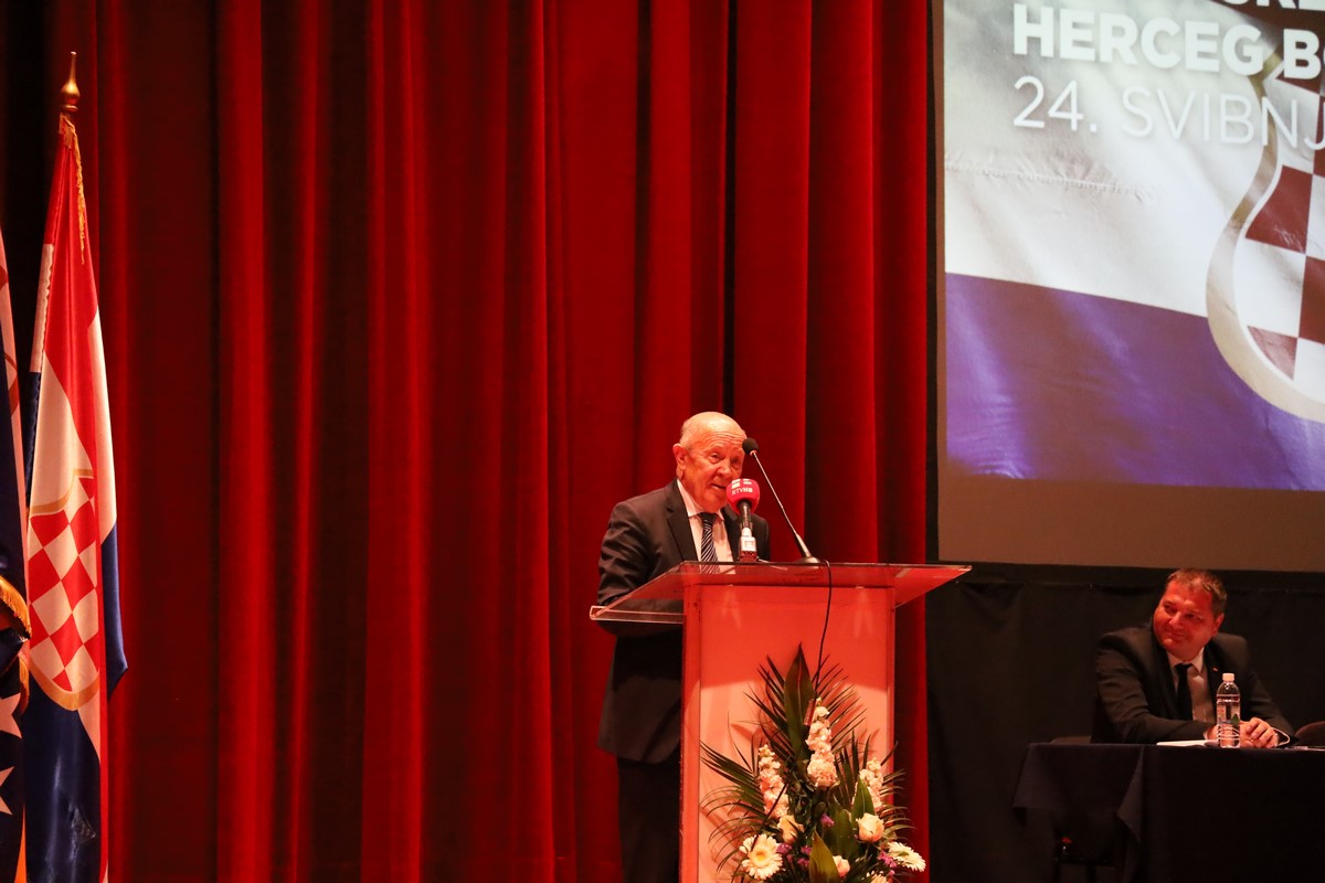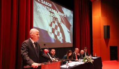 „Današnji Sabor Hrvatske Zajednice Herceg Bosne je uvod u razdoblje koje je ispred nas, kako za hrvatski narod, tako i za Bosnu i Hercegovinu u cjelini. Ubrzo imamo i zasjedanje Hrvatskog narodnog sabora koji će na jednom mjestu okupiti sve legitimne hrvatske političke predstavnike i kako bi skupa s tog mjesta poslali jednu vrlo jasnu poruku. Vrijednosti koje kao narod baštinimo ugrađene su upravo u Hrvatsku Zajednicu Herceg Bosnu i sve institucije koje su proizašle iz njenog djelovanja i na takvo što trebamo biti ponosni. Prije skoro godinu dana, ovdje u Mostaru, potpisali smo dva prevažna Sporazuma koja još nisu završena. Poruke koje ćemo danas odavde poslati, kao i 4. lipnja (op.a. redovito 9. zasjedanje Hrvatskog narodnog sabora), biti će jasan pokazatelj da nećemo odustati dok i drugi Sporazum u potpunosti ne završimo. Prvi, koji se odnosio na pitanje Grada Mostara, omogućio je njegovu potpunu funkcionalnost. Legitimno predstavljanje i naša prava kao konstitutivnog naroda nam nitko ne može i neće uskratiti u našoj domovini. Bosna i Hercegovina nikad neće biti unitarna država. Neće biti ni građanska na način kako to netko smišlja i želi provesti kroz dominaciju nad drugim. Ona je već građanska na skoro svim razinama kroz zastupničke domove i županijske skupštine. Predsjedništvo i Domovi naroda i postoje da se kroz njih zaštite prava konstitutivnih naroda kao natkrovljujućeg ustavnog načela. Oko toga se ne pregovara. Prostor Federacije moramo racionalizirati, a imamo dovoljno praktičnih primjera kako takvo što ostvariti i stvoriti stabilnost da konačno otvorimo novo razdoblje europskog puta. U ovakvom statusu mi ne možemo pratiti standarde i vrijednosti koje Europa, a poglavito EU, žive. Snaga zajedništva koju živi hrvatski narod naš je temelj da ustrajemo u svemu što stoji ispred nas. Ova neizborna godina je godina reformi, a naše zajedništvo najveća snaga da uspijemo u tome“, istaknuo je predsjednik HDZ-a BiH i HNS-a dr. Dragan Čović prilikom svog obraćanja na Saboru Hrvatske Zajednice Herceg Bosne.