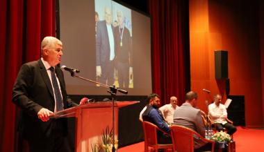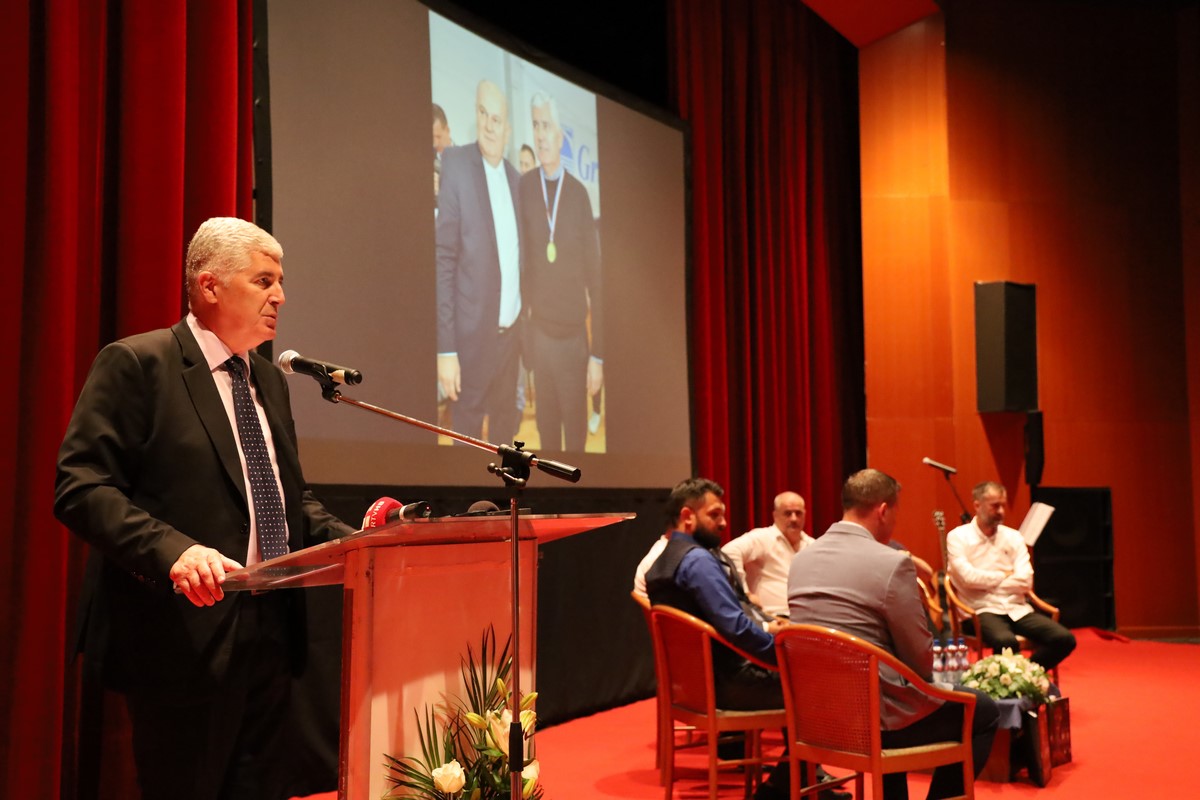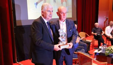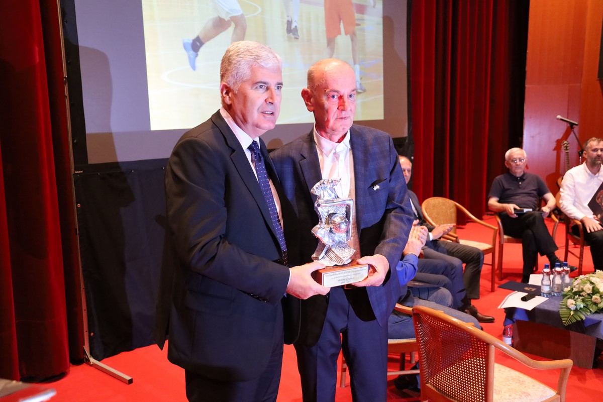 Dopredsjednik Hvidre grada Mostara i predsjednik odbora za izradu monografije Miro Šunjić uručio je prigodan pokal uz znak zahvalnosti za nesebičan doprinos i suradnju za sve godine Zajedništva od 1995 do danas visokom pokrovitelju turnira, predsjedniku dr. Draganu Čoviću.