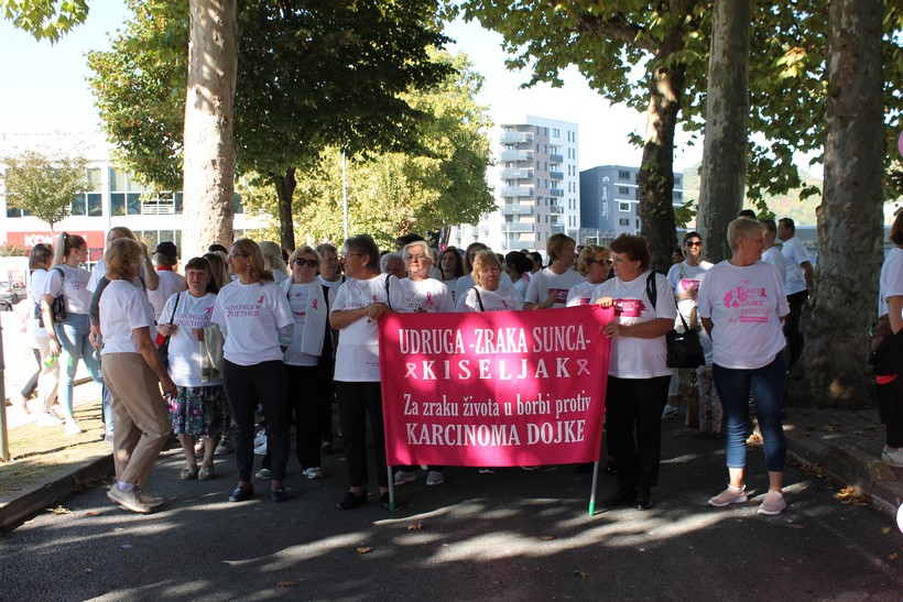„Mnoge žene koje su bile članice naše Udruge nažalost više nisu s nama, ali su dale ogroman doprinos da se o bolesti koja je prije 15-ak godina bila skoro tabu tema, razgovara, prije svih u našim obiteljima ali i cjeloj zajednici i to je za oboljele žene iznimno važno jer podrška koju dobijaju na ovaj način je neprocjenjiva“, kazala je Nada Bešlić, predsjednica Udruge „Zraka sunca“, naglasivši kako Kiseljak može i treba biti ponosan jer je poput velikih europskih gradova različitim sadržajima podržao oboljele od karcinoma dojke, vodećeg oblika malignih bolesti žena u svijetu. A lokalna zajednica u Kiseljaku, itekako je uz žene koje se nose s ovom opakom bolešću, od običnih ljudi do čelnika općine koja je bila pokrovitelj ovogodišnjeg programa „Utrke, šetnje za odzdravljenje“.