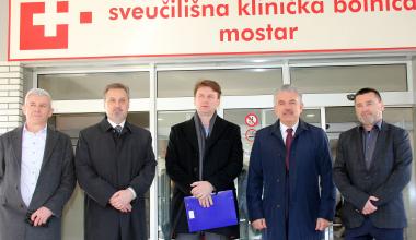Dr. sc. Nevenko Herceg, predsjednik Vlade Hercegovačko-neretvanske županije, zajedno s dr. sc. Goranom Opsenicom, ministrom zdravstva, rada i socijalne skrbi i Adnanom Faladžićem, ministrom financija, posjetio je danas Sveučilišnu kliničku bolnicu Mostar gdje je s ravnateljem dr. sc. Antom Kvesićem razgovarao o aktivnostima vezanima za realiziranje projekta izgradnje Klinike za dječje bolesti. Ravnatelj Kvesić primio je visoko izaslanstvo županijske Vlade zajedno s dr. sc. Mirom Leventićem, predsjednikom Stručnoga vijeća SKB-a Mostar, i dr. sc. Kristinom Galić, savjetnicom ravnatelja SKB-a Mostar.