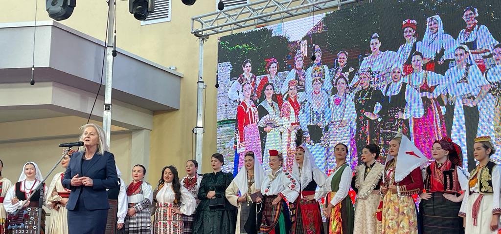 „Srdačno vas sve pozdravljam, posebno mlade dame, djevojke u narodnim nošnjama zbog kojih smo se mi večeras ovdje i okupili“, započela je svoje obraćanje Borjana Krišto, kandidatkinja Hrvatskog narodnog sabora za hrvatskog člana Predsjedništva BiH. „Tradicija i tradicijska kultura su neprocjenjivo blago naroda. Kako to neprocjenjivo blago sačuvati od zaborava na najbolji način pokazujemo ovdje večeras organiziranjem ovakvih manifestacija. Uz ovu tradicijsku nošnju i ovu manifestaciju, uz vjeru, kulturu i jezik koji smo čuli večeras ovdje uistinu doprinosimo očuvanju i osnaživanju našeg identiteta hrvatskog naroda, kako u domovini tako i izvan nje. Čestitam organizatorima ove manifestacije, našem ocu Zvonki, Udruzi Stećak, Hrvatskoj matici iseljenika, ali da bi takva jedna manifestaciju uspjela, čuli smo večeras ovdje, čestitam i pozdravljam potporu odnosno pokroviteljstvao ove manifestacije koja ide od lokalne razine, našeg načelnika, kojemu čestitam kao domaćinu, do svih razina vlasti u BiH, posebno predsjedniku Hrvatskog narodnog sabora dr. Draganu Čoviću. I na ovaj način šaljemo poruku da baštinimo tradiciju i kulturu te obvičaje i identitet hrvatskog naroda u kontekstu i najvažnijeg pitanja prava i položaja te pozicije hrvatskog naroda u Bosni i Hercegovini“, naglasila je Krišto.