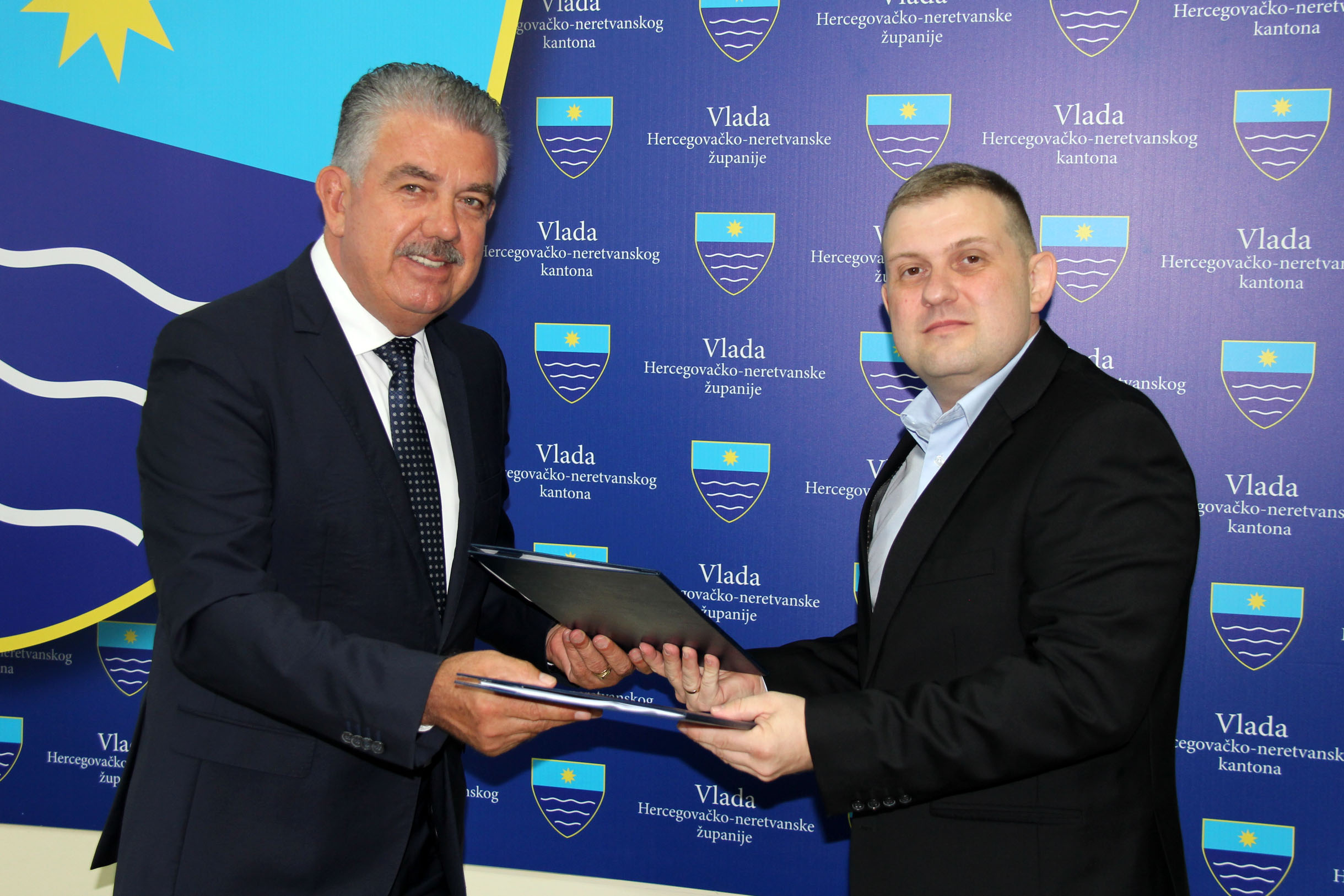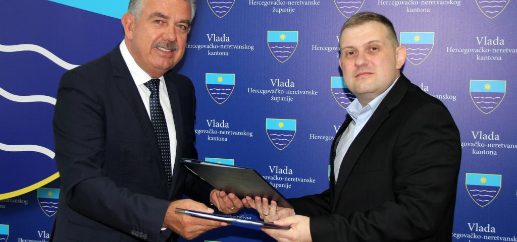 Predsjednik Vlade Hercegovačko-neretvanske županije dr. sc. Nevenko Herceg danas je, u ime svih poslodavaca u zdravstvenomu sustavu HNŽ-a, s predsjednikom Strukovnoga sindikata doktora medicine i stomatologije u HNŽ-u dr. Borisom Matićem, u nazočnosti zamjenika predsjednika Sindikata dr. Elvedina Habibije, potpisao novi Kolektivni ugovor o pravima i obvezama poslodavaca i radnika iz djelatnosti doktora medicine i stomatologije na području HNŽ-a.
