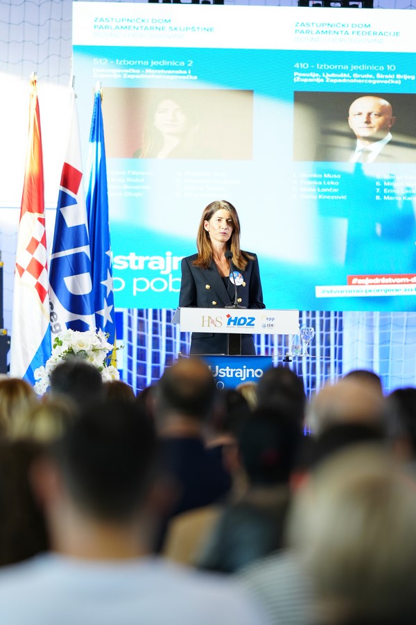 Darijana Filipović, dopredsjednica HDZ-a BiH i nositeljica liste za Zastupnički dom Parlamentarne skupštine BiH poručila je kako je BiH suočena s mnogim problemima, koje HDZ BiH i stranke okupljene oko Hrvatskog narodnog sabora BiH žele, mogu i hoće mijenjati u budućnosti. „Izborni program smo nazvali Stvaramo promjene za budućnost, svjesni da izbore prate politički procesi koji će odrediti kakva će biti budućnost BiH. Izbor koji pravimo 2. listopada nije izbor za nas kandidate i za naše liste. 2. listopada izbor je glasa Hrvata u kakvoj BiH želimo živjeti“, poručila je Filipović.