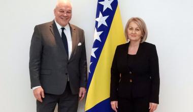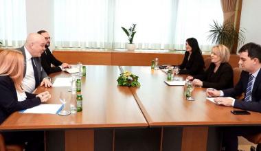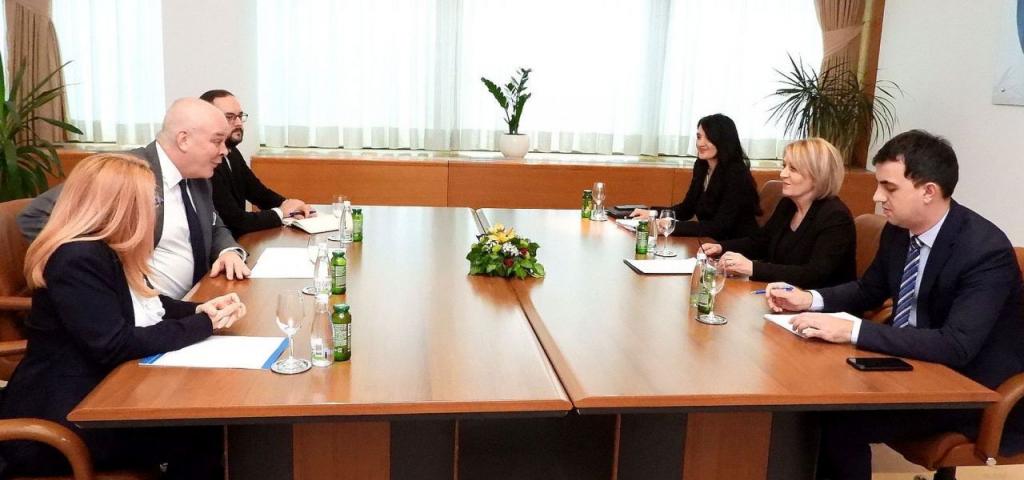 Predsjedateljica Vijeća ministara BiH Borjana Krišto razgovarala je u Sarajevu sa šefom Misije OESS-a u BiH veleposlanikom Brianom Aggelerom.